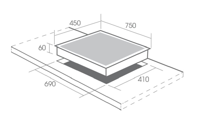 Kích thước khoét đá: 690 x 410mm