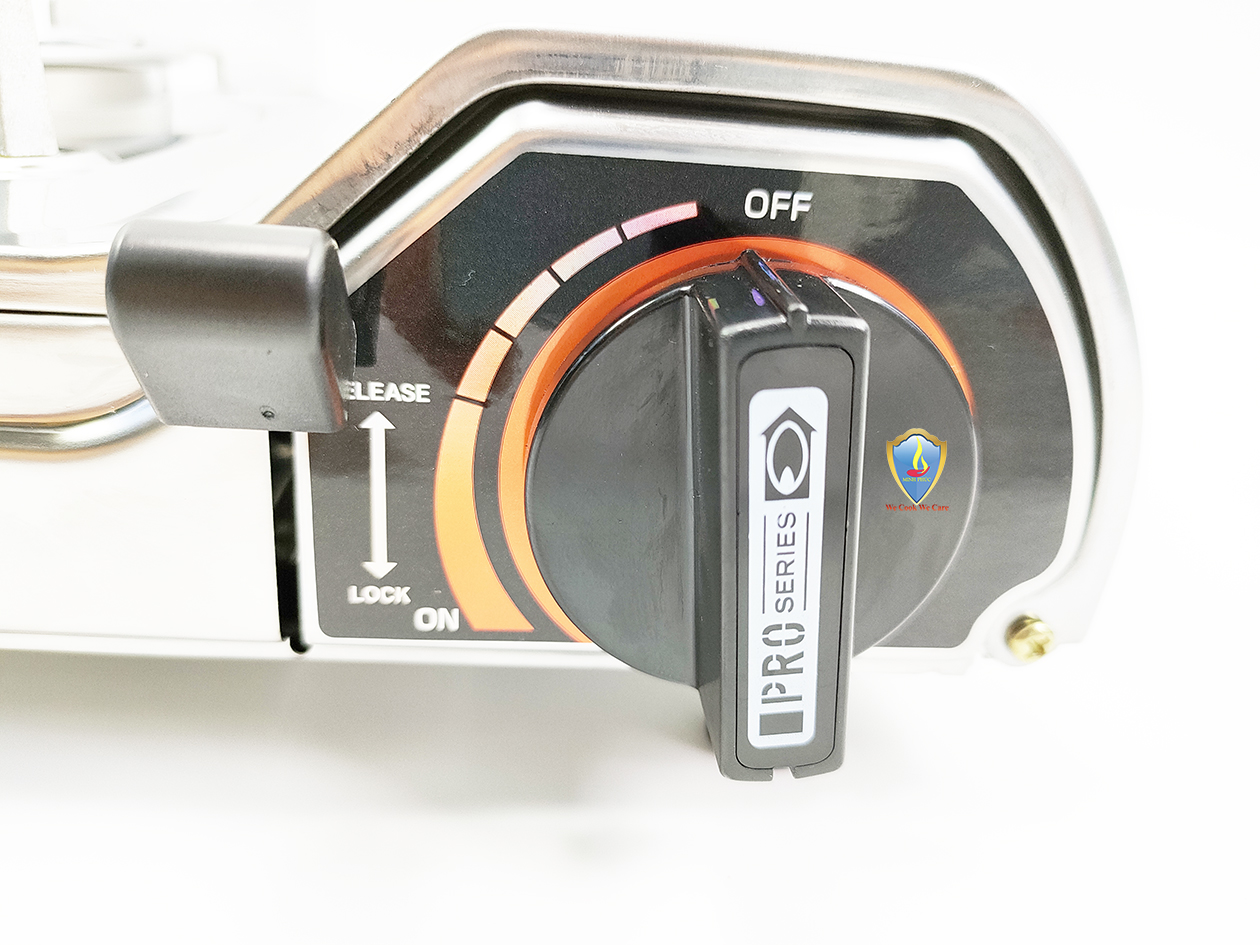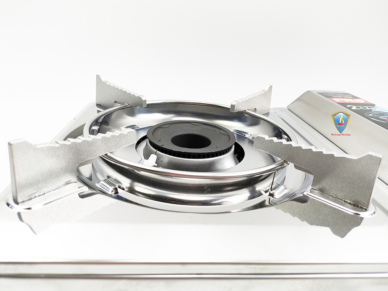 Bếp du lịch sử dụng van ngắt gas an toàn tự động Inline Cut. Bếp sử dụng hệ thống đầu đốt theo tiêu chuẩn JIA (Nhật Bản), kết hợp vòng chắn gió, giúp ngọn lửa