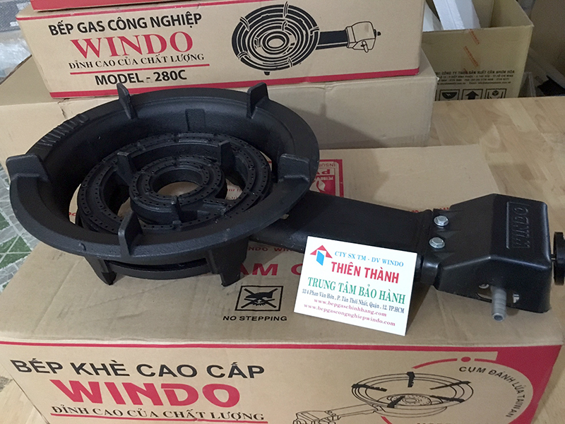 nghiệp WINDO (260C),Ổ cụm bếp được nhập khấu từ đài loan,bền bỉ.Bếp công nghiệp WINDO (260C),với đầu điếu gang đúc đường kính lớn,cho ngọn lửa lớn.Nấu nhanh hơn,bền hơn so với các sản phẩm khác,đặc biệt chế độ tiết kiệm gas,khi hầm nước lèo,chiên xàới thời gian lâu.