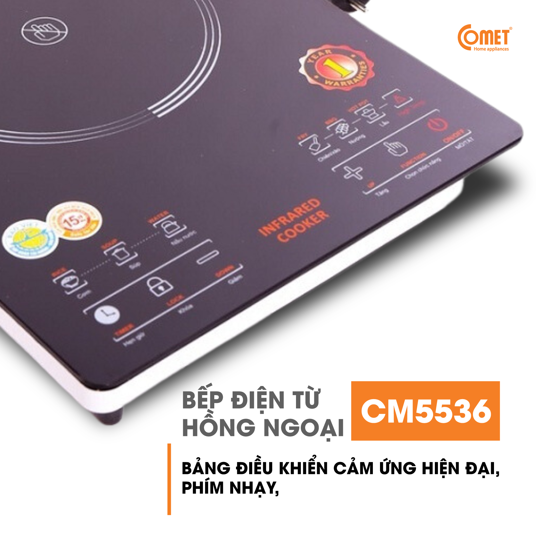 ✨Bếp Hồng Ngoại Cảm Ứng Comet CM5536 – Hàng chính hãng - Công Suất 2000W, Mặt Kính Chịu Lực, Đa Chức Năng, Bảo Hành 12 Tháng