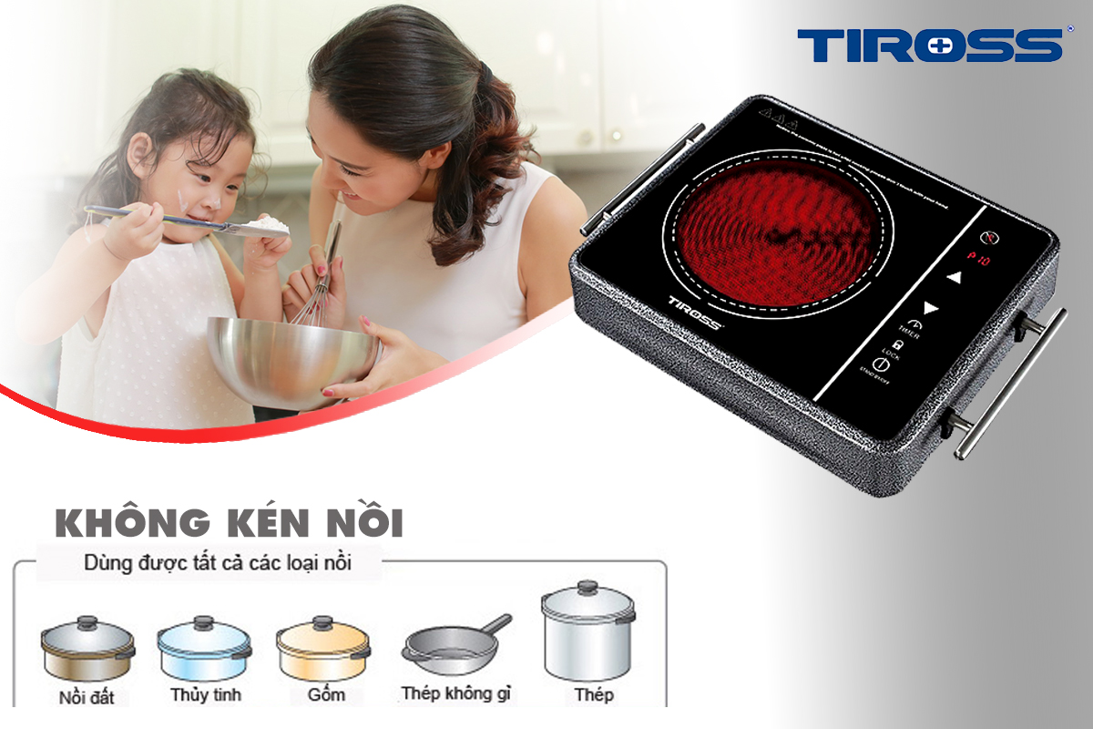 Bếp hồng ngoại Tiross TS800 chính hãng có khả năng nấu nướng đa dạng, bạn có thể lên thực đơn cho bữa ăn của gia đình từ các món chiên, xào, đến các món ninh, hầm, lẩu, bún,… Thiết kế bếp nhỏ tiện lợi cho bạn khi thưởng thức món lẩu vào những ngày cuối tuần cùng gia đình. Đặc biệt, bếp hồng ngoại cho phép bạn nướng trực tiếp thực phẩm lên bề mặt, vô cùng tiện lợi và an toàn.