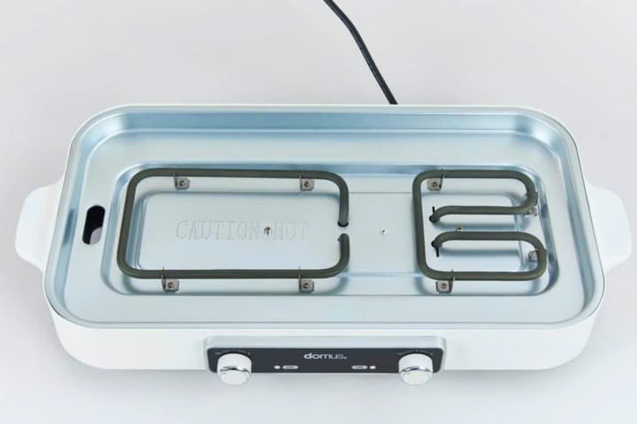 - Có khe dẫn dầu chảy xuống khay chứa dầu khiến món ăn trở nên healthy hơn. Bếp có 2 nút điều chỉnh nhiệt độ riêng biệt phù hợp nhiều nhu cầu sử dụng và với các món ăn hay nguyên liệu khác nhau, người dùng có thể đặt nhiệt độ khác nhau ở bên trái và bên phải - Đáy nồi lẩu và chảo đều được dập nổi và phủ chống dính an toàn Chảo nướng đôi rộng để nấu nhiều món hơn. Chảo thiết kế 1 bên có mặt nghiêng để thoát dầu dễ dàng Thông tin sản phẩm: