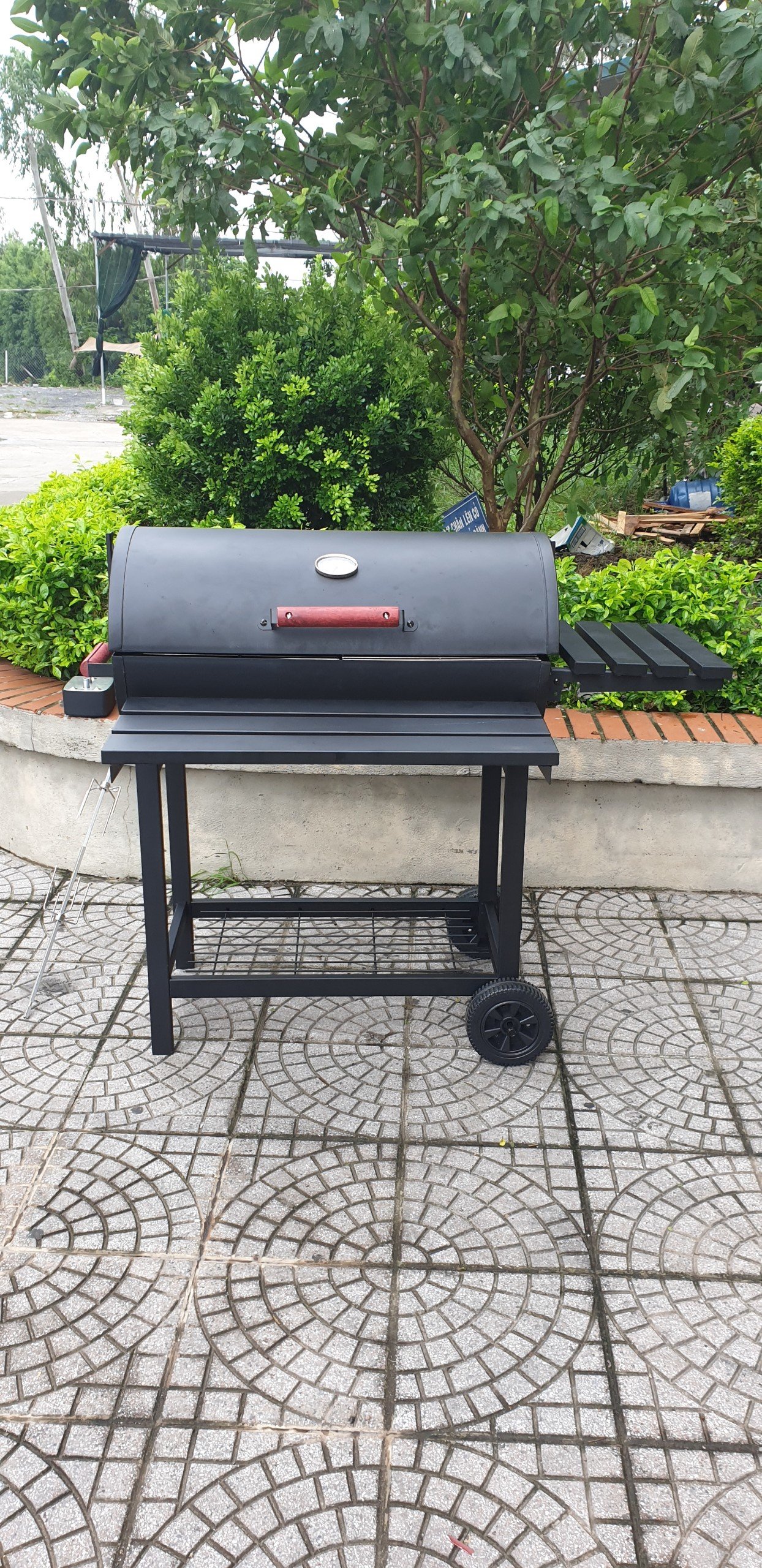 Bếp nướng than hoa sân vườn có nắp đậy gồm các bộ phận: + chân bếp + vỉ nướng: rộng 60x29cm + Khay than + Nắp đậy. + Giá Đỡ thực phẩm
