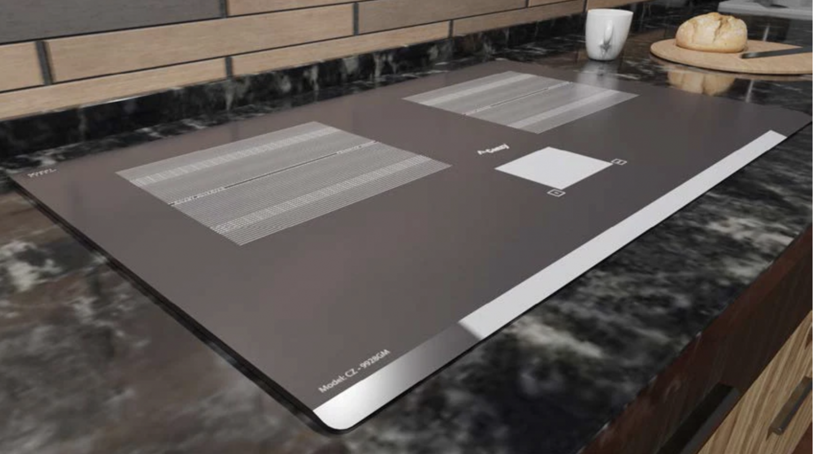 Đây là mặt kính chuyên dụng dành cho bếp điện từ, là một loại kính có chất lượng cao, rất cứng, bền và có nhiều đặc điểm nổi trội như: khả năng chịu nhiệt, khả năng chống trầy xước và chống va đập Mặt kính gồm các thấu kính hội tụ, truyền nhiệt từ bếp lên đáy nồi theo phương thẳng đứng, không thất thoát nhiệt ra môi trường. Mặt kính màu xám liền nguyên khối, an toàn, thẩm mỹ và tiện trong việc vệ sinh, lau chùi.