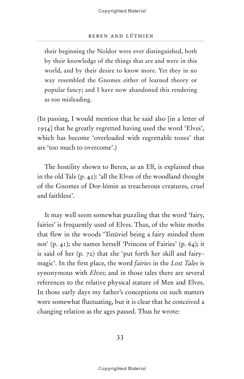 Essential to the story, and never changed, is the fate that shadowed the love of Beren and Luthien: for Beren was a mortal man, but Luthien was an immortal Elf. Her father, a great Elvish lord, in deep opposition to Beren, imposed on him an impossible task that he must perform before he might wed Luthien. This is the kernel of the legend; and it leads to the supremely heroic attempt of Beren and Luthien together to rob the greatest of all evil beings, Melkor, called Morgoth, the Black Enemy, of a Silmaril.