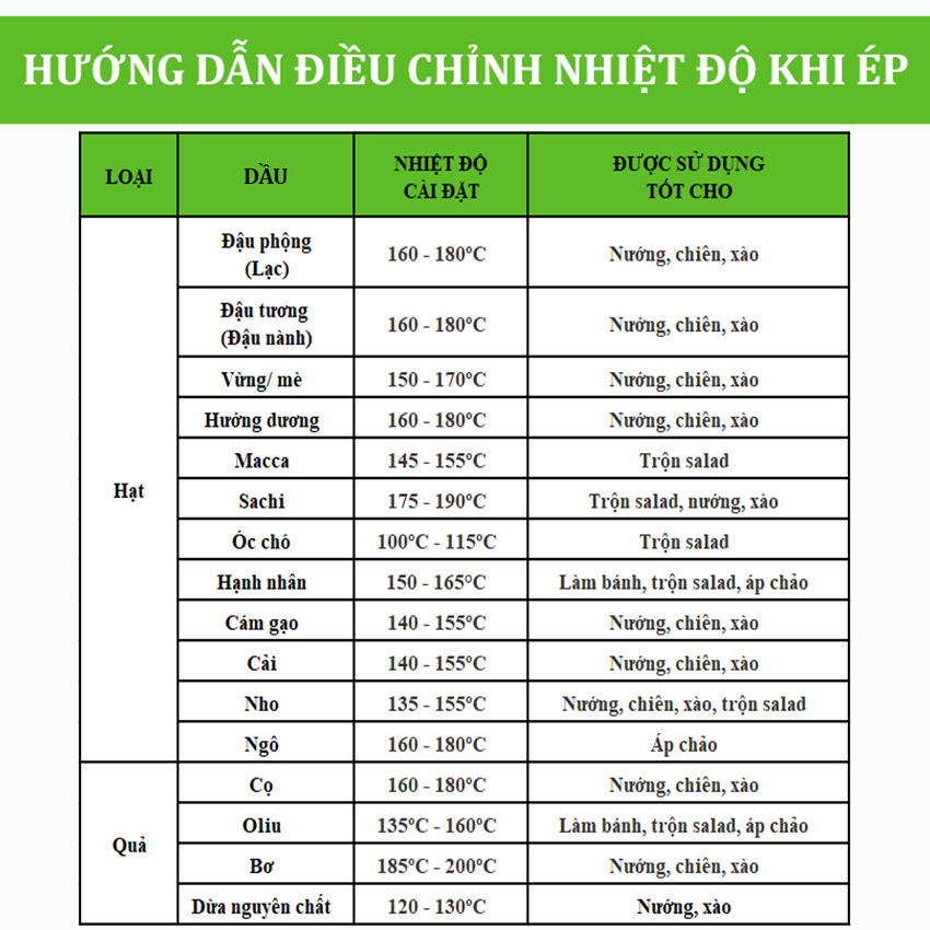 - Có thể ép được tất cả các loại nguyên liệu, các loại hạt có chứa tinh dầu
