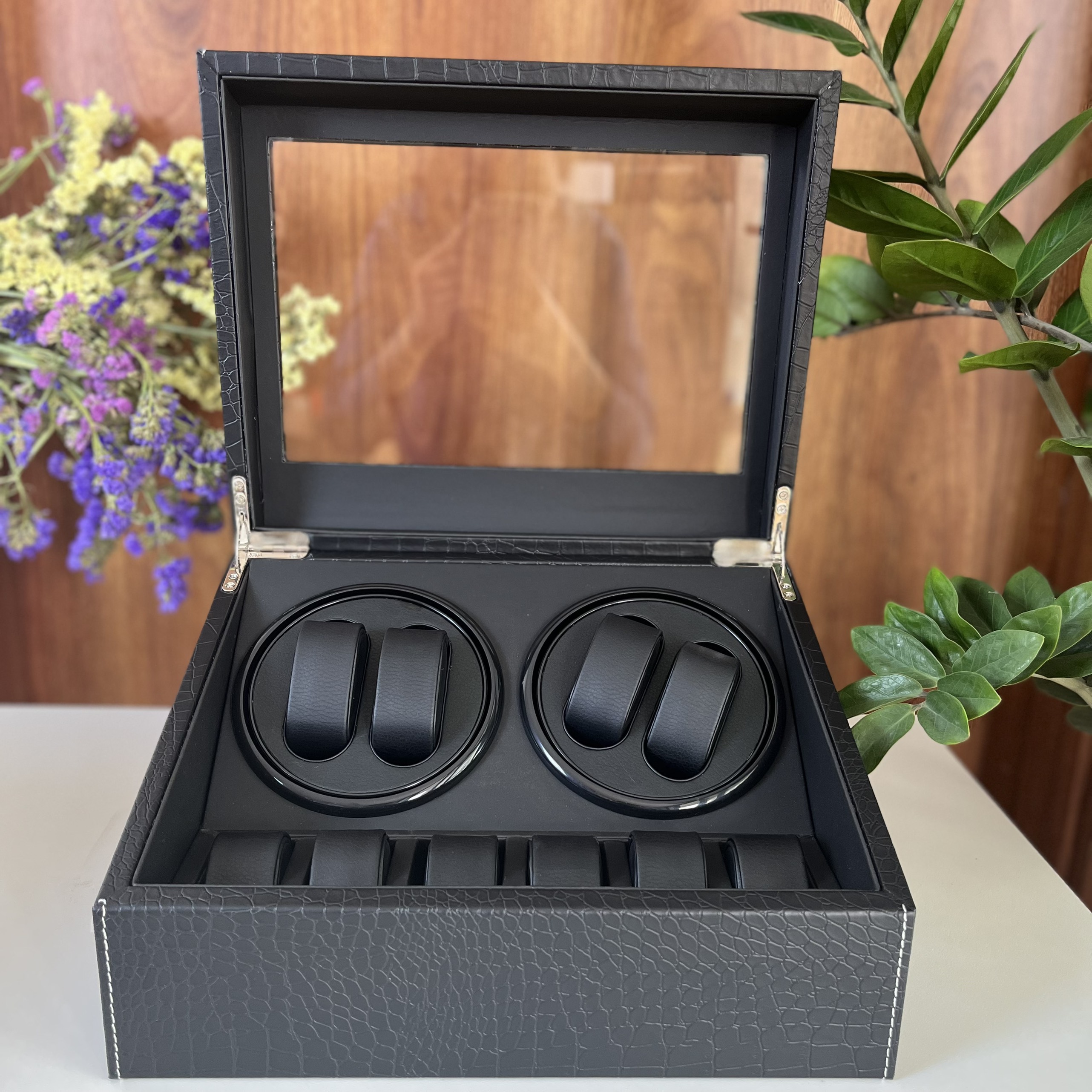 ✨[BH 2 Năm Động Cơ] Hộp Đựng Đồng Hồ Cơ 4 Xoay Và 6 Trưng Bày Da