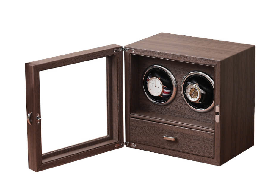 Mua tại TiktokHộp xoay 2 đồng hồ Saike kèm ngăn đựng trang sức ✿ Chất liệu: Thân gỗ MDF dán veneer vân gỗ tần bì, củ gối bằng mút cao su cao cấp đàn hồi tốt ✿ Thiết kế mới nhất của hãng Saike cuối năm 2024 có cảm biến ánh sáng để tiết kiệm điện và nâng cao tuổi thọ của động cơ. Đóng gói :