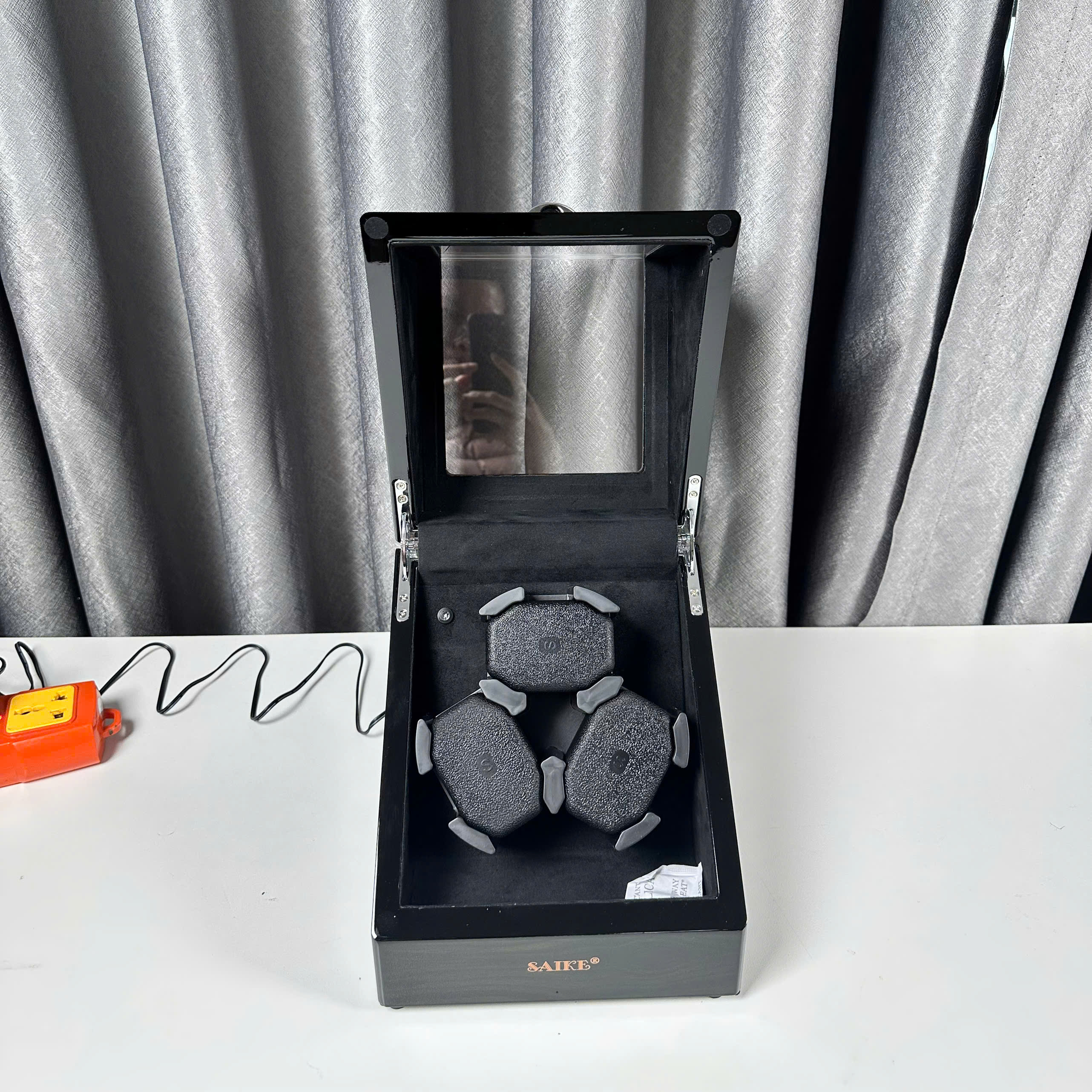 ✨[BH 2 năm động cơ] Hộp Xoay 3 đồng hồ gỗ Saike nền nỉ