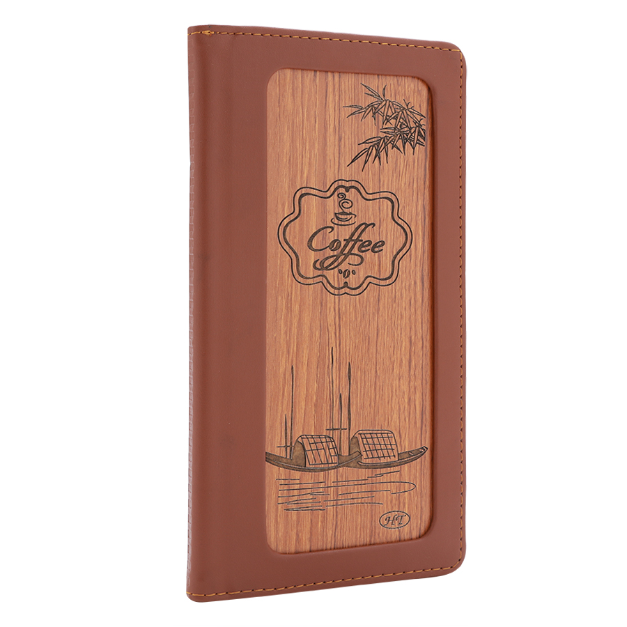 - Bìa 10 Lá Menu Da May Gỗ Cao Cấp A6 HT 2312 thiết kế simili bọc ngoài đẹp mắt, bền, cho giá trị sử dụng dài lâu. Các trang lá làm bằng nhựa trong