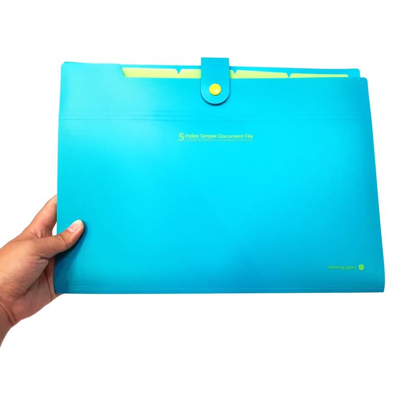 Bìa 5 Ngăn Simple Xanh Dương - Morning Glory 79165 Giúp lưu giữ các tài liệu quan trọng, tránh tình trạng thất lạc. Bìa được làm bằng chất liệu nhựa chắc chắn, có khả năng