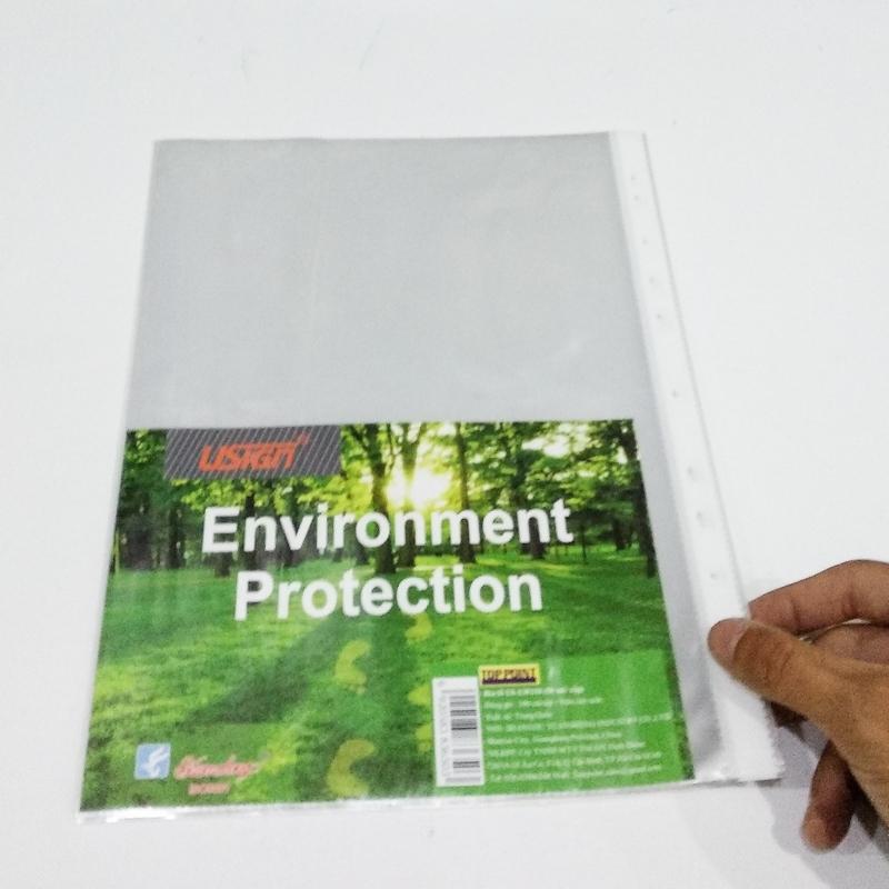 Bìa màu trắng, được đục lỗ bên gáy với chất liệu nilon mỏng trong suốt, giúp bạn dễ dàng sắp xếp và lưu trữ tài liệu.