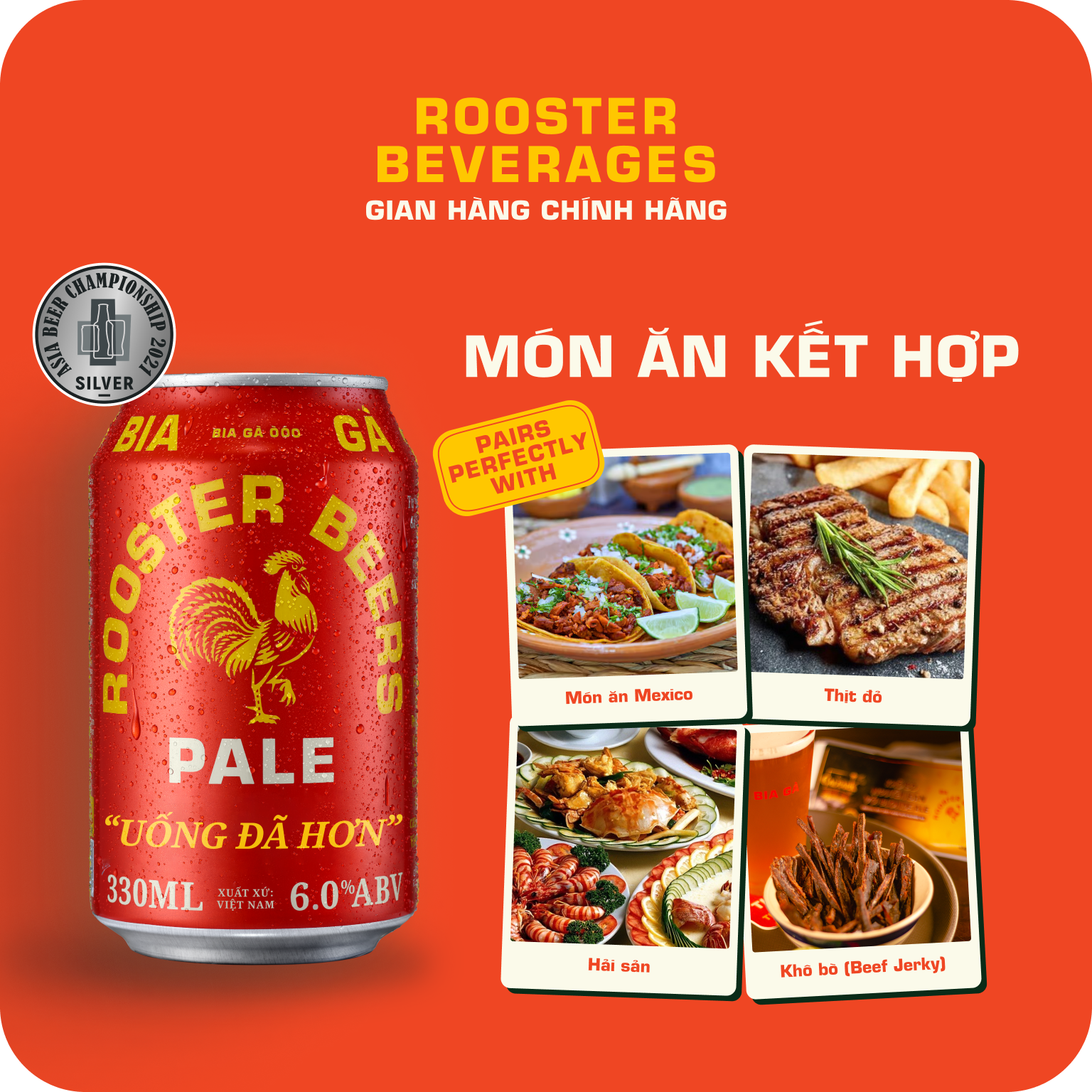 Mua tại TiktokRooster Beers Pale - Vị Nồng Nàn Dễ dành chinh phục cả những người sành bia khó tính Rooster Pale mang đến cho bạn trải nghiệm thưởng bia tinh tế với nền bia sệt quấn quýt nơi đầu lưỡi, hậu vị đắng nhẹ và hương hoa bia nồng nàn. Ghi chú • Bia Pale phong cách Mỹ • Được nấu từ 4 loại lúa mạch và 4 loại hoa bia • Nền bia sệt. Hậu vị đắng nhẹ • 6.0% ABV – 32 IBU • Dùng kèm các món nướng: xúc xích, hải sản và thịt bò. VỀ ROOSTER BEERS: Là những chuyên gia nấu bia đầy đam mê, sáng tạo và nhiệt huyết, chúng tôi mong muốn mang đến cho khách hàng những dòng bia thủ công mang hương vị cổ điển tuyệt hảo. Mỗi ngụm bia Rooster mát lạnh sẽ là một trải nghiệm thuởng thức đáng nhớ, kể cả đối với những người sành bia lâu năm.
