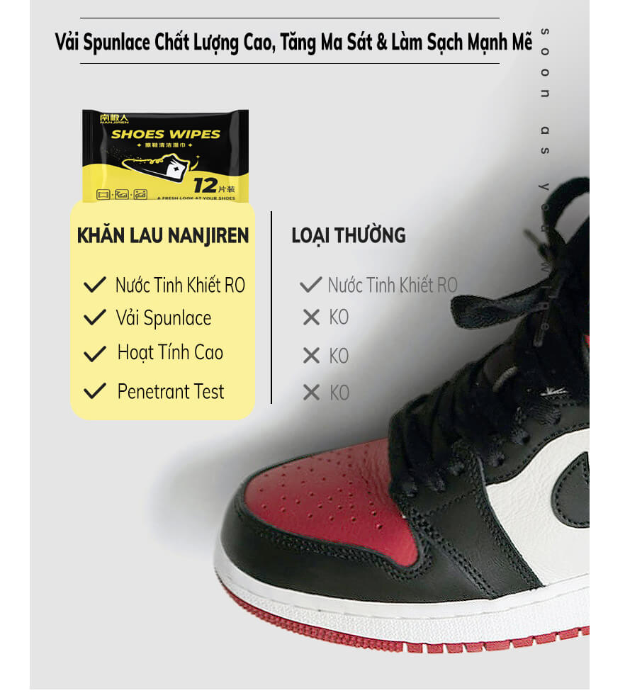 - Khăn vải ướt chuyên dụng vệ sinh giày sneaker, giày thể thao đa năng giúp vệ sinh, loại bỏ đi các vết bẩn siêu tốc và hiệu quả hơn