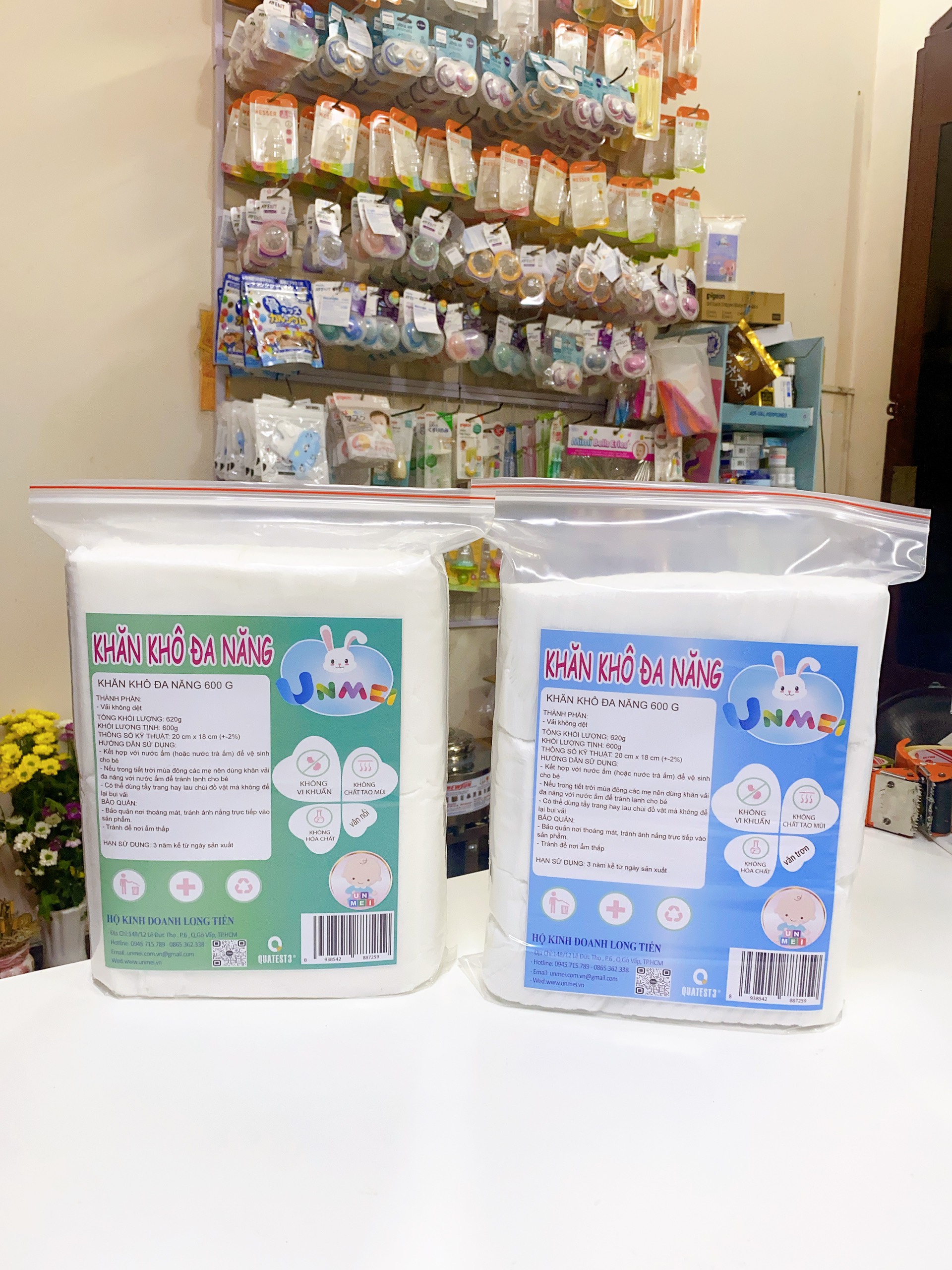 - Khăn khô UNMEI hoàn toàn không mùi hương, thân thiện với làn da và cảm giác của bé khi sử dụng. Kích thước khăn (1 tờ): 13.5 x 18.5 (cm) Hướng dẫn sử dụng sản phẩm