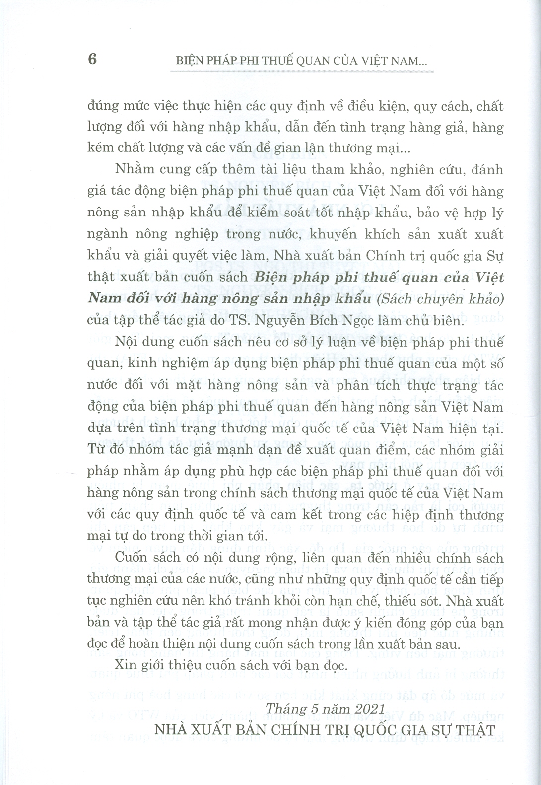 ✨Biện Pháp Phi Thuế Quan Của Việt Nam Đối Với Hàng Nông Sản Nhập Khẩu (Sách chuyên khảo)