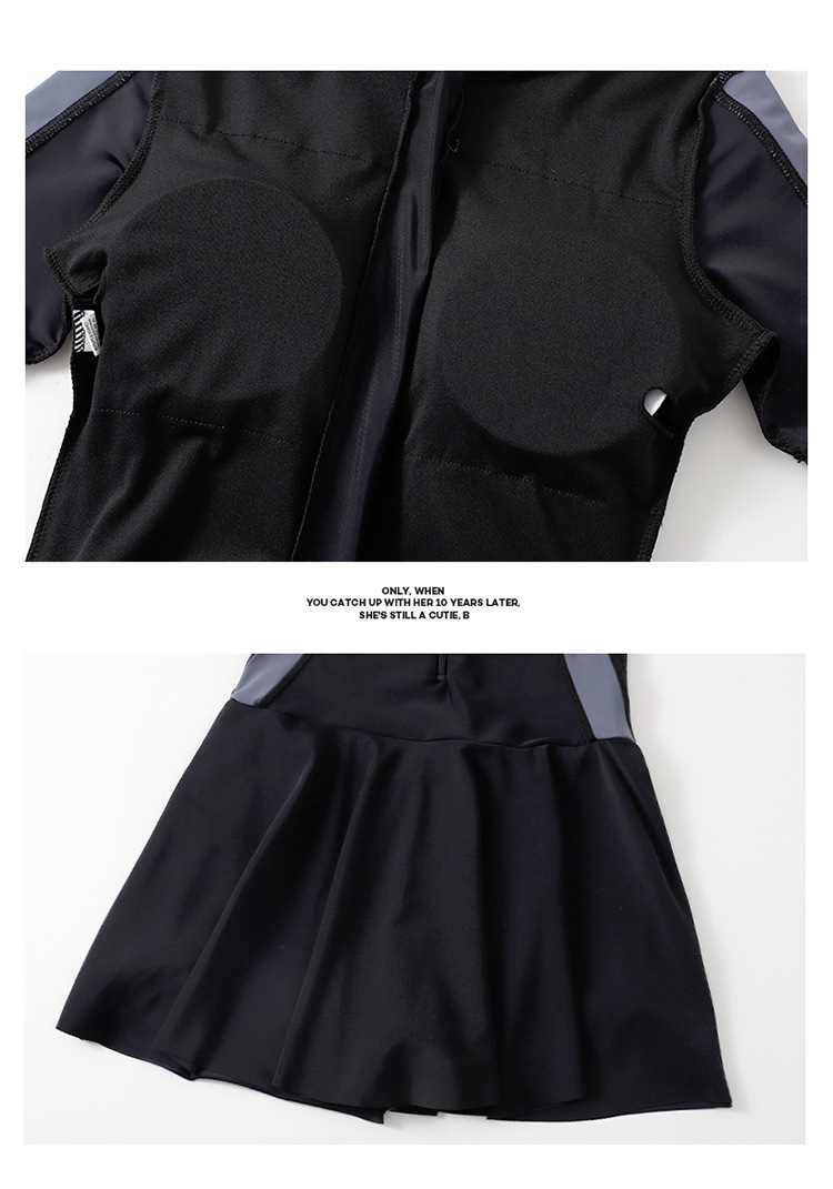 Đồ bơi liền mảnh che bụng thời trang cho nữ Áo có mút sẵn Đen phối xám thanh lịch, Có dây kéo phía trước Có quần đùi liền bên trong váy Chất liệu: Vải thun