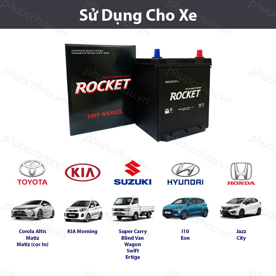 ► Ắc Quy ROCKET SMF NS40ZL/ZLS (12V-35Ah) là ắc quy khô, kín khí (miễn bảo dưỡng). Ắc quy Rocket được sản xuất bởi Công ty Global Battery, Rocket không chỉ là thương hiệu đại diện cho Hàn Quốc mà
