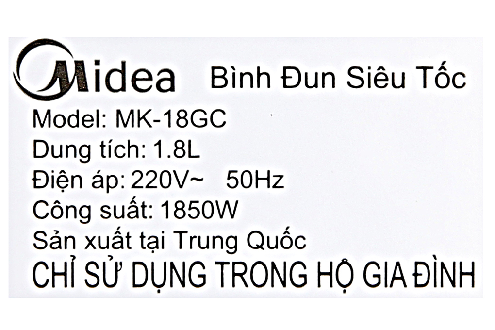 Bình đun siêu tốc Midea 1.8 lít MK-18GC thiết kế và chất lượng tuyệt hảo, cung cấp đủ nước nóng cho gia đình sử dụng hằng ngày, sản phẩm nên có trong mọi nhà.