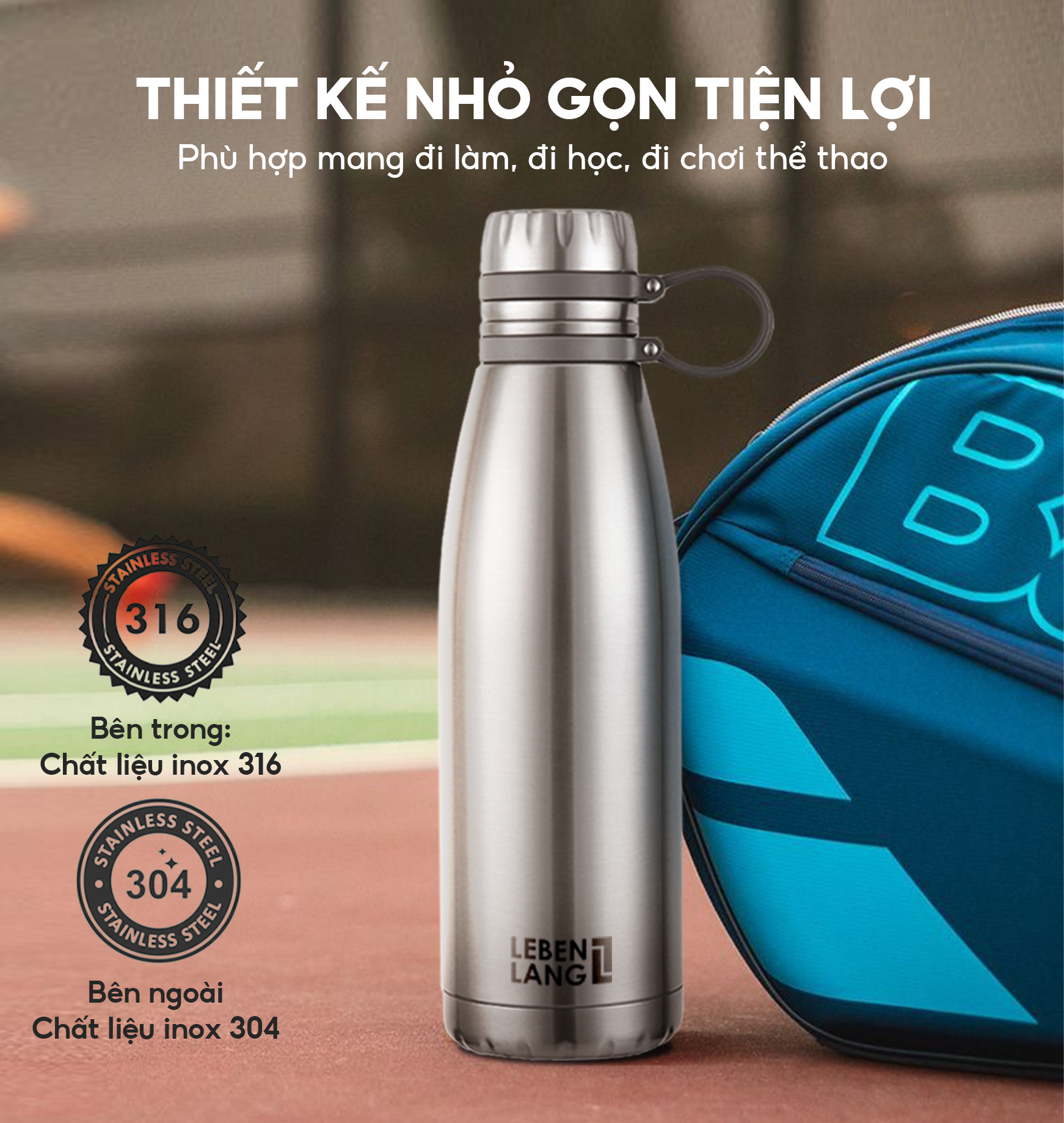 Bình giữ nhiệt Lebenlang LBL1660, LBL1661, LBL1662 inox cao cấp không gỉ, lõi lọc trà đi kèm, hàng chính hãng 9 LÝ DO NÊN CHỌN BÌNH GIỮ NHIỆT CỦA LEBENLANG - Lõi lọc trà đi kèm: Inox 304 an toàn, tháo rời tiện lợi - Quai cầm: Dây cao su in logo, chắc chắn - Thiết kế: Liền khối thân nắp bằng inox, chống rò rỉ - Giữ nhiệt 6-8 tiếng (nóng/lạnh) - Ruột inox 316 chống ăn mòn, không mùi - Tiện Lợi Và An Toàn - Dễ Dàng Vệ Sinh - Đa Dạng Dung Tích: LBL1660 (650ml), LBL1661 (850ml), LBL1662 (1100ml) - Hàng chính hãng I. THÔNG SỐ KỸ THUẬT - Thương hiệu: Lebenlang - Model: LBL1660,LBL1661,LBL1662 - Dung tích: LBL1660 (650ml), LBL1661 (850ml), LBL1662 (1100ml) - Chất liệu: Inox 304, inox 316, Caosu II. ĐẶC ĐIỂM NỔI BẬT - Chất liệu inox 304 với lớp cách nhiệt và thiết kế chắc chắn của bình cho hiệu quả bảo quản nhiệt độ tốt, hương vị của đồ uống suốt cả ngày dài. - Lõi lọc trà đi kèm bằng inox 304 – Chất liệu inox cao cấp, an toàn cho sức khỏe, dễ dàng tháo rời để pha trà hoặc cà phê một cách tiện lợi. - Quai cầm dây cao su in logo – Thiết kế chắc chắn, chống trơn trượt, tiện lợi khi mang theo, thể hiện đẳng cấp từng chi tiết. - Thiết kế liền khối thân nắp bằng inox – Chống rò rỉ hiệu quả, đảm bảo an toàn khi di chuyển, sang trọng và bền bỉ với thời gian. - Giữ nhiệt 6-8 tiếng – Duy trì nhiệt độ lý tưởng cho cả đồ nóng và lạnh, thoải mái sử dụng cả ngày dài. - Ruột inox 316 siêu bền – Chống ăn mòn, không bám mùi, không gỉ sét, an toàn tuyệt đối cho sức khỏe người dùng. - Tiện lợi & An toàn – Thiết kế thông minh, phù hợp cho dân văn phòng, đi học, du lịch hay tập gym.