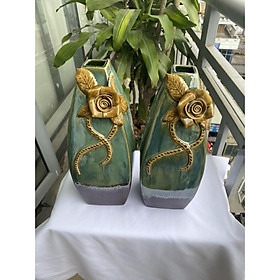 Sản phẩm gồm 2 lọ hoa miệng lượn. Chi tiết sản phẩm: Sản phẩm được phủ bởi lớp men rạng vừa cổ điển vừa sang trọng. Kết hợp với các họa tiết đắp nổi hình