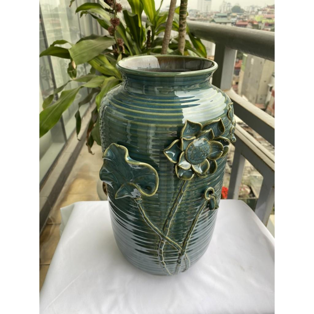Bình hoa cao cấp Bát Tràng, hàng chuẩn loại 1, dáng chum họa tiết đắp nổi được thực hiện thủ công 100% bởi bàn tay lành nghề của các nghệ nhân làng nghề. Sản phẩm