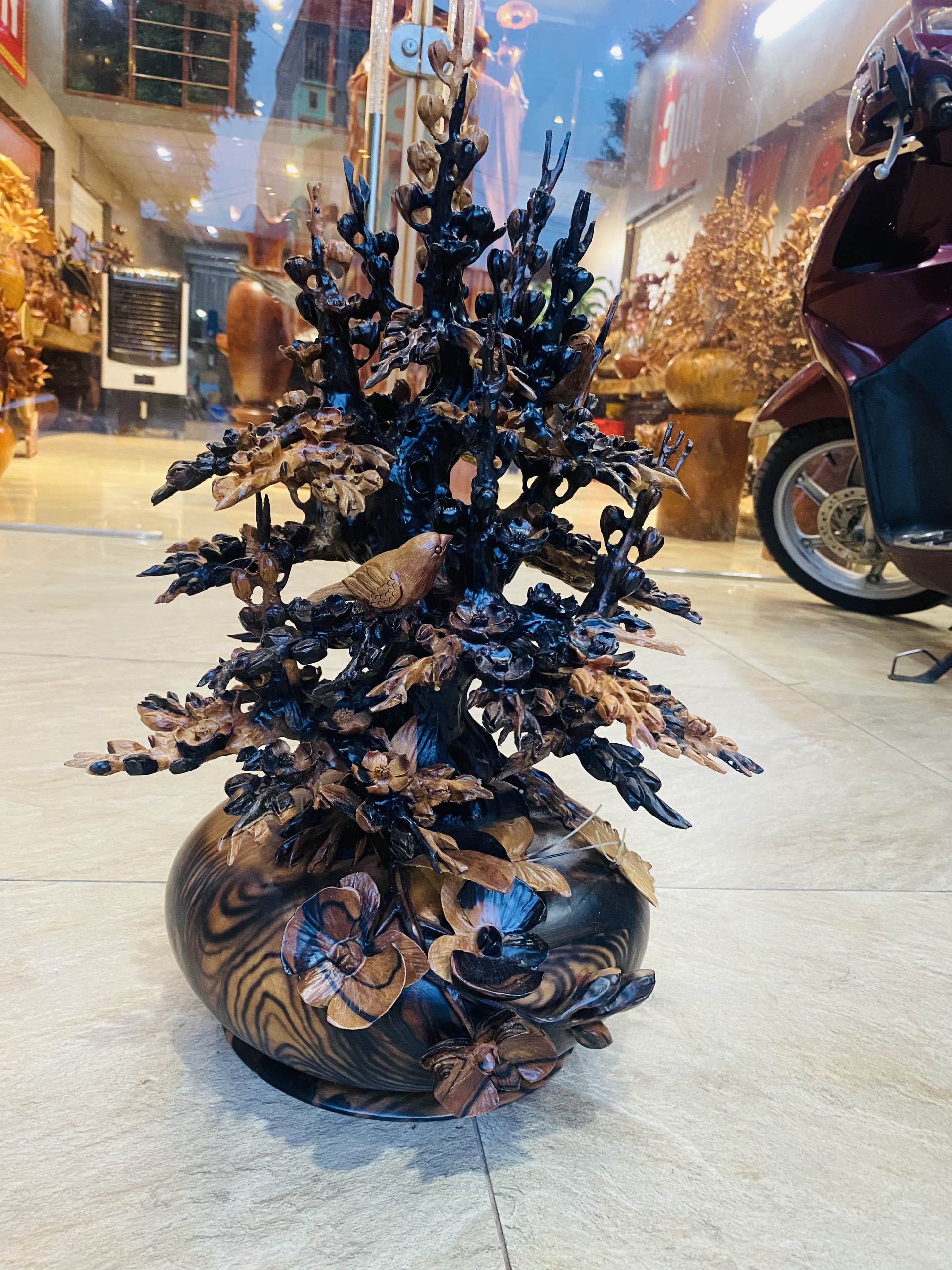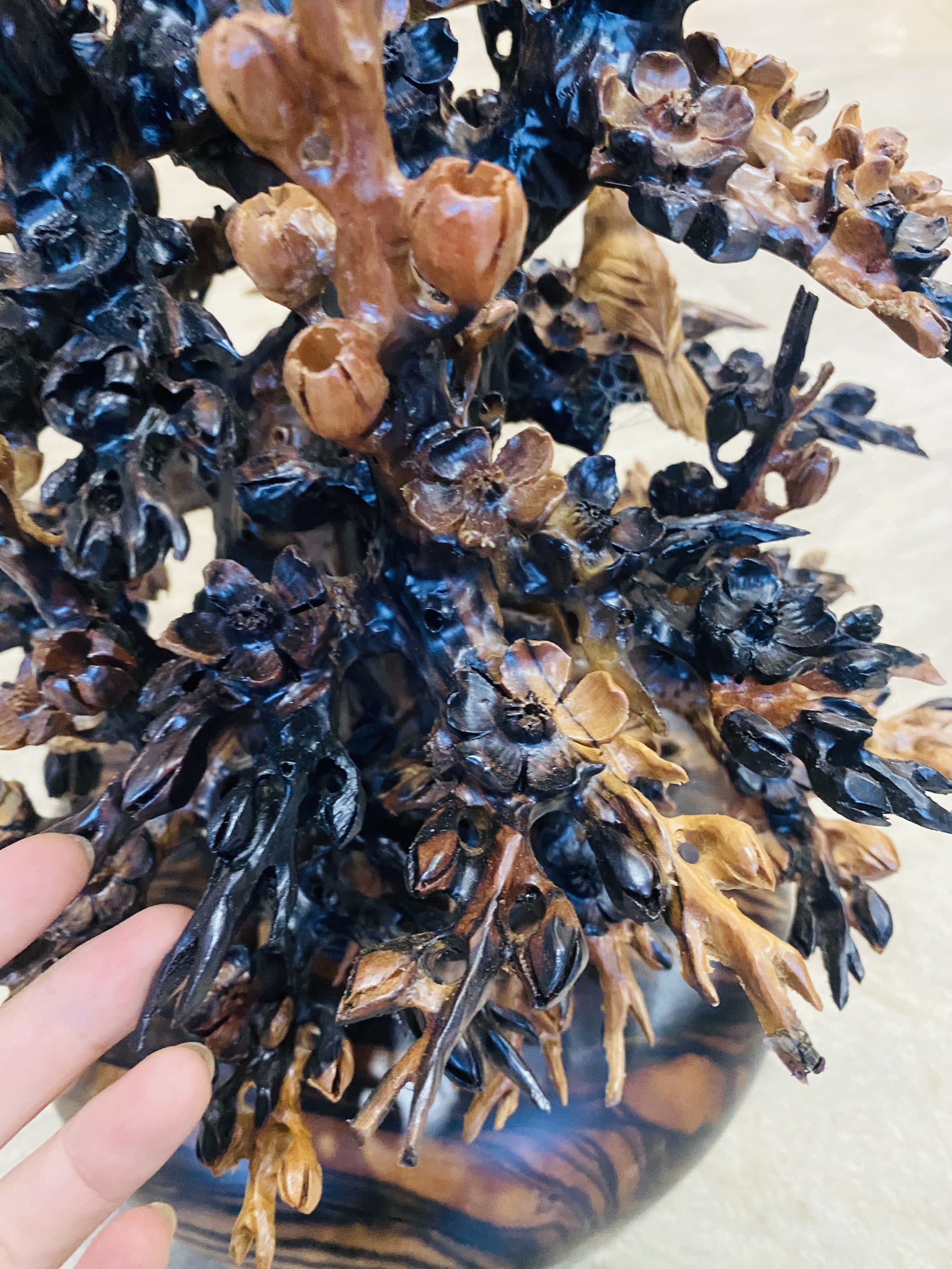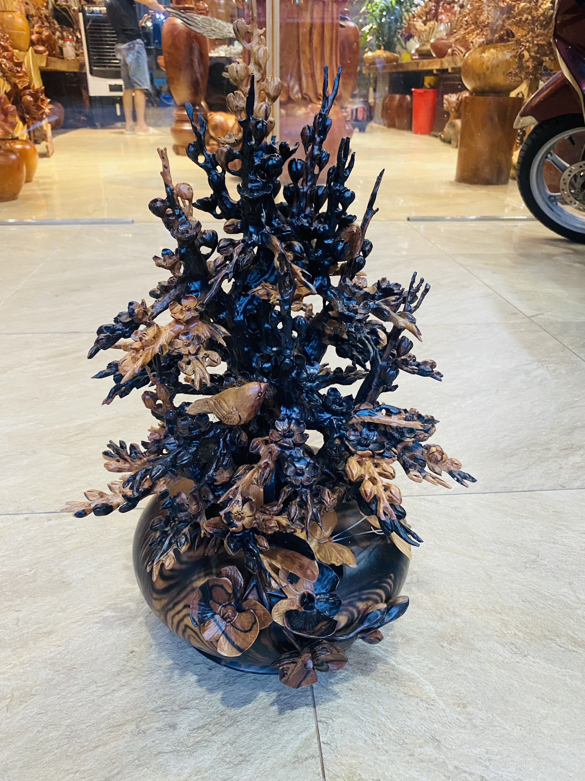 _ Bình hoa mai phú quý trang trí phong thủy được làm bằng chất liệu gỗ mun hoa tự nhiên 100%