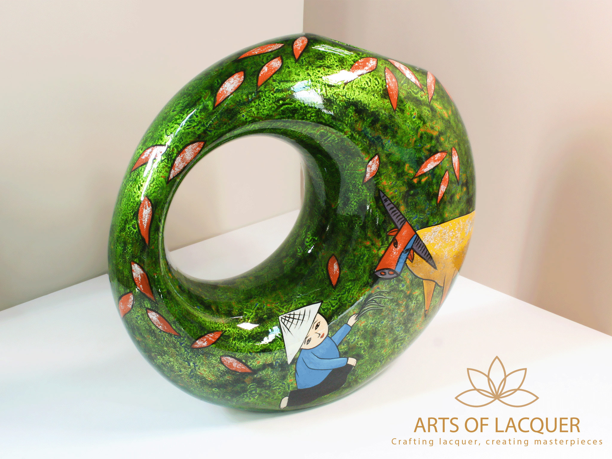 Bình Hoa Sơn Mài "Thuận Hoà Làng Quê" là sự lựa chọn hoàn hảo cho những ai yêu thích nghệ thuật thủ công và phong cảnh làng quê Việt Nam. Hãy thêm vào bộ sưu tập của bạn một tác phẩm nghệ thuật đầy ý nghĩa từ Arts of Lacquer.