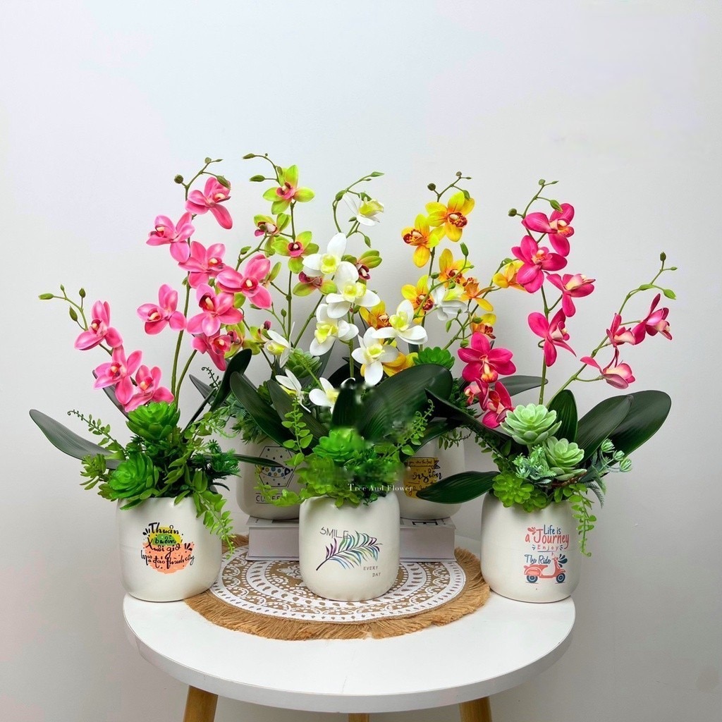 Bình lan hồ điệp giả - kèm chậu đầy đủ phụ kiện - Cây giả, hoa lụa Decor trang trí nhà cửa