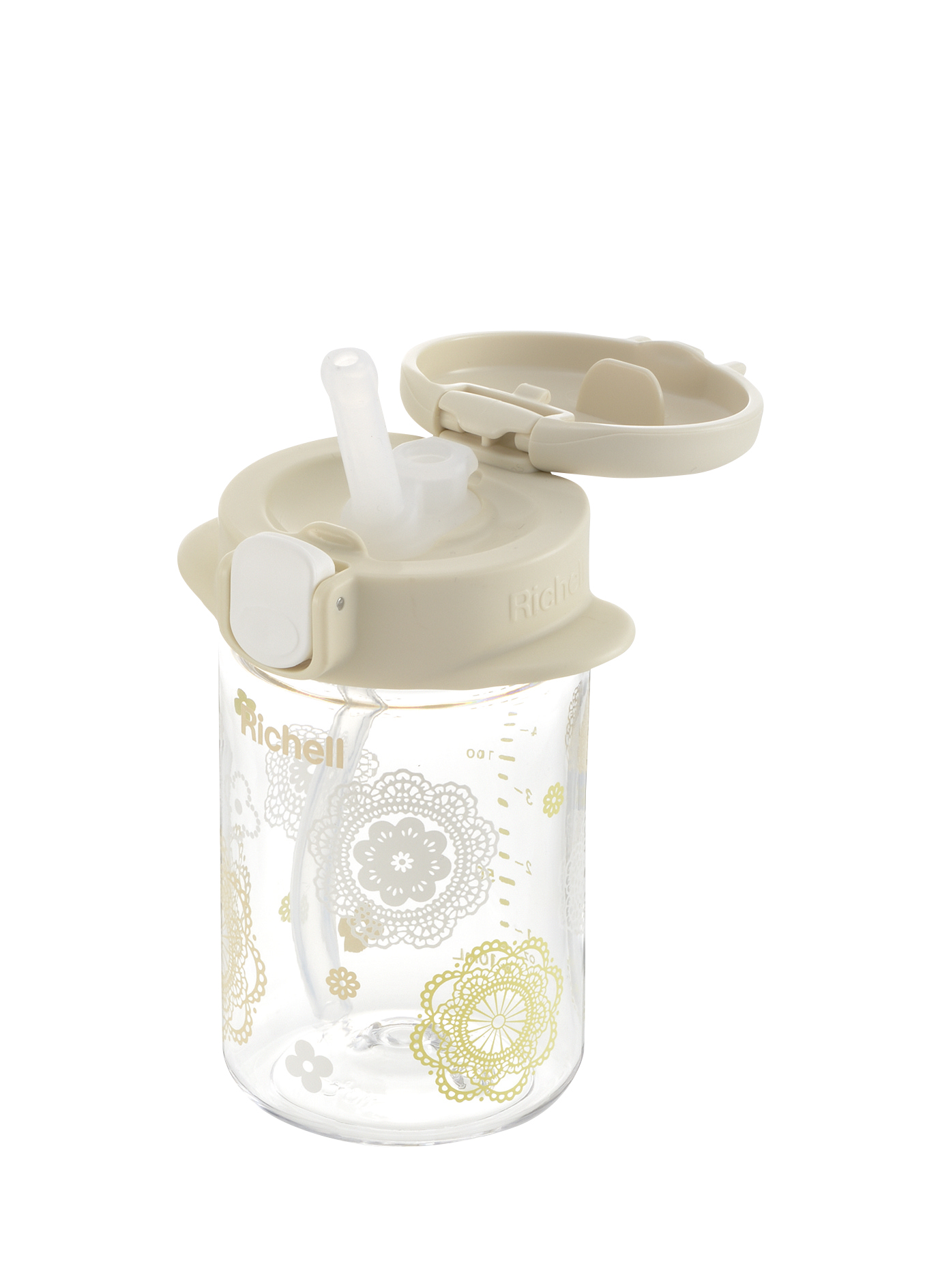 Bình ống hút chống đổ 200ml Richell, cốc ống hút đầu silicone mềm, chống sặc hiệu quả