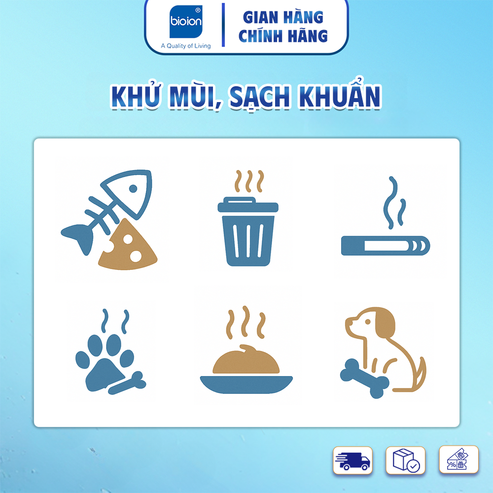 Công nghệ sinh học Nhật Bản. Tác dụng trong 30 giây. Hiệu quả loại bỏ 99,9% vi trùng trong không khí được chứng nhận bởi Viện nghiên cứu Osaka Nhật Bản. Khử sạch mùi khó