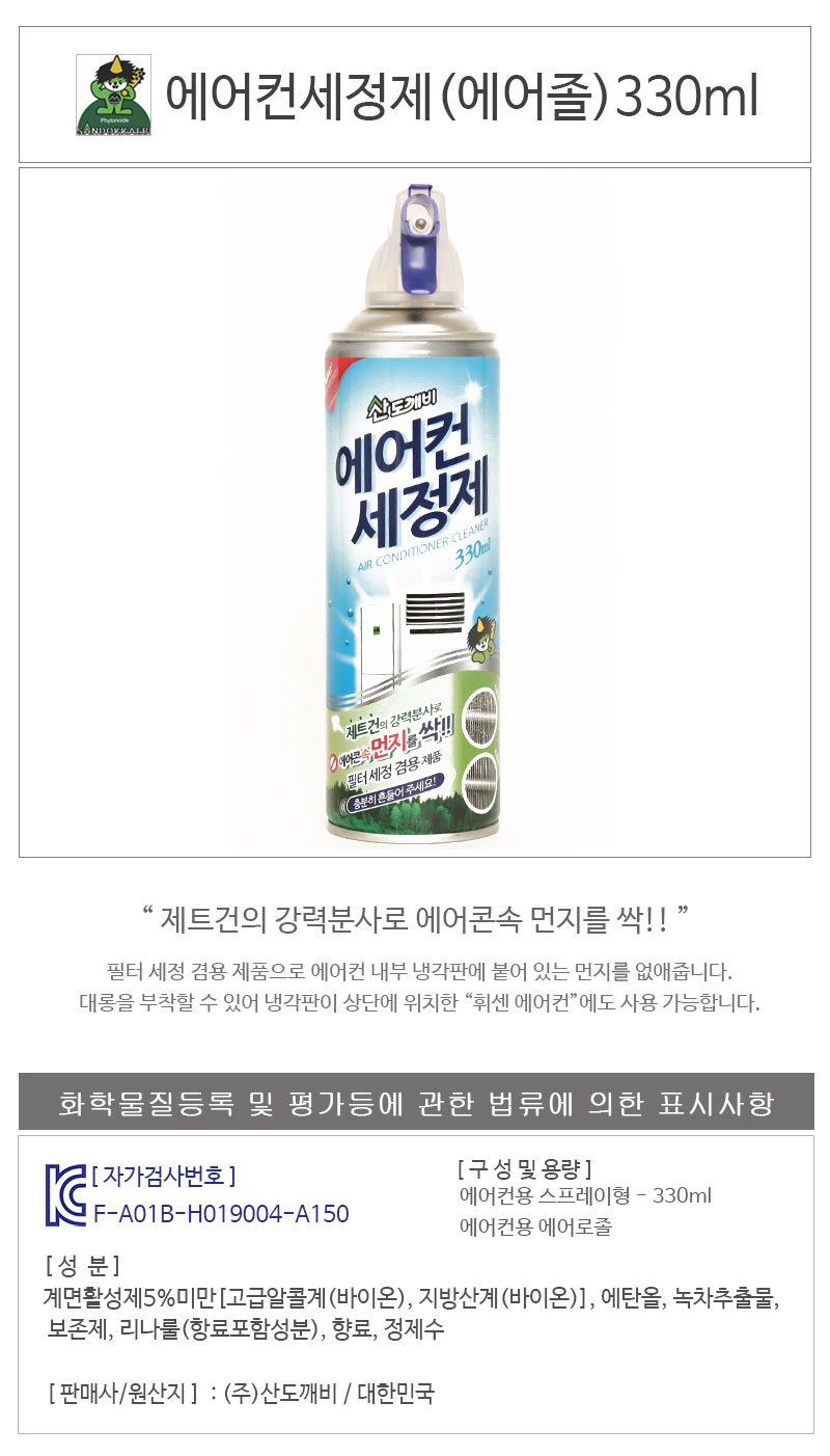 Mua tại TiktokBình xịt vệ sinh máy điều hòa Sandokkaebi 330ml - nội địa Hàn Quốc : Thành phần: Chất hoạt động bề mặt 5%, Ethanol, mùi hương liệ toàn cho người sử dụng và bảo vệ mạch điện tử. Công dụng: -Giúp bảo dưỡng, vệ sinh dàn điều hòa một cách dễ dàng & thuận tiện bằng việc làm sạch bụi bẩn ở dàn lạnh, dàn nóng - Xịt bụi mọi ngóc ngách với khí nén cực mạnh. -Tạo ra môi trường không khí sạch,an toàn với hương thơm tươi mát dễ chịu. -Loại bỏ những tác nhân gây bệnh về hô hấp như nấm mốc, Hướng dẫn sử dụng: