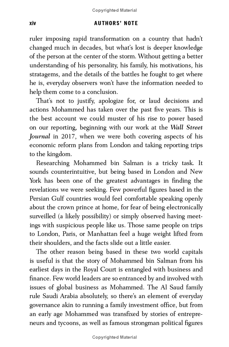 From award-winning Wall Street Journal reporters comes a revelatory look at the inner workings of the world's most powerful royal family, and how the struggle for succession produced Saudi Arabia's charismatic but ruthless Crown Prince Mohammed bin Salman, aka MBS.