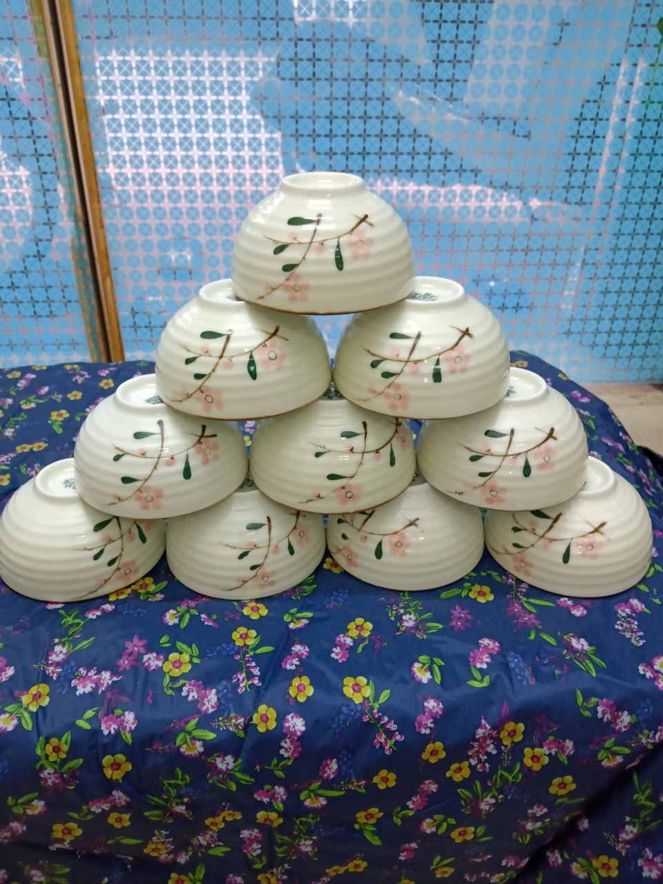 Bộ 10 bát con ăn cơm vẽ hoa đào đỏ gốm sứ Bát TràngBộ 10 bát con ăn cơm vẽ hoa đào đỏ gốm sứ Bát Tràng