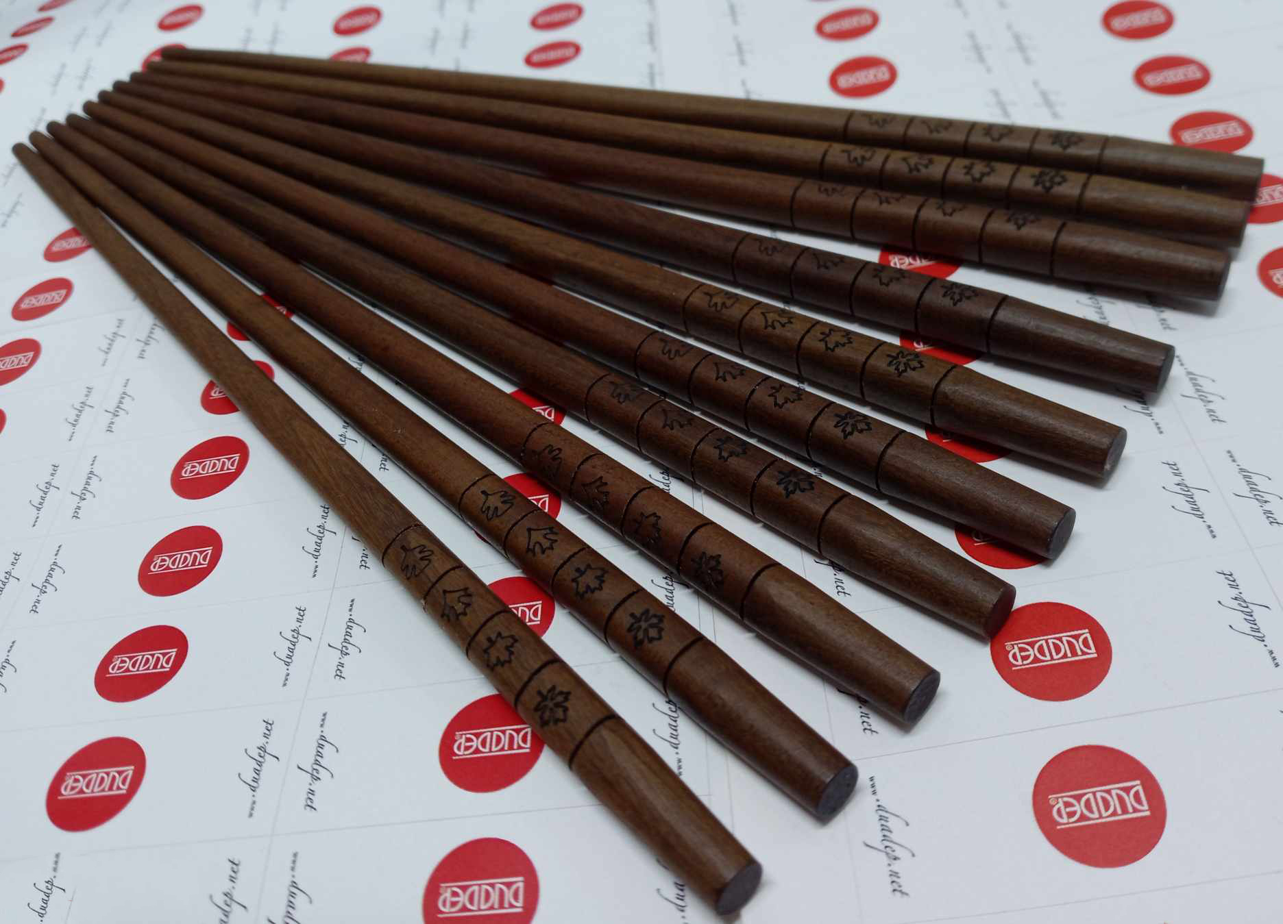 Set 10 đôi đũa Vân gỗ viền vàng sang trọng. Có thể là quà biếu tặng
