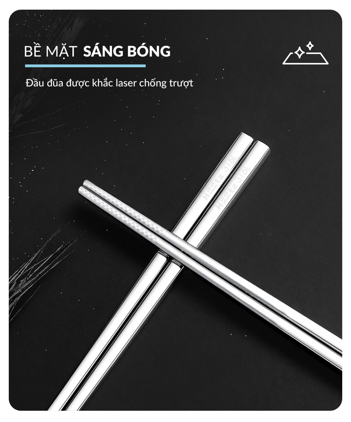Thiết kế: thân vuông, Đầu đũa được khắc laser chống trượt