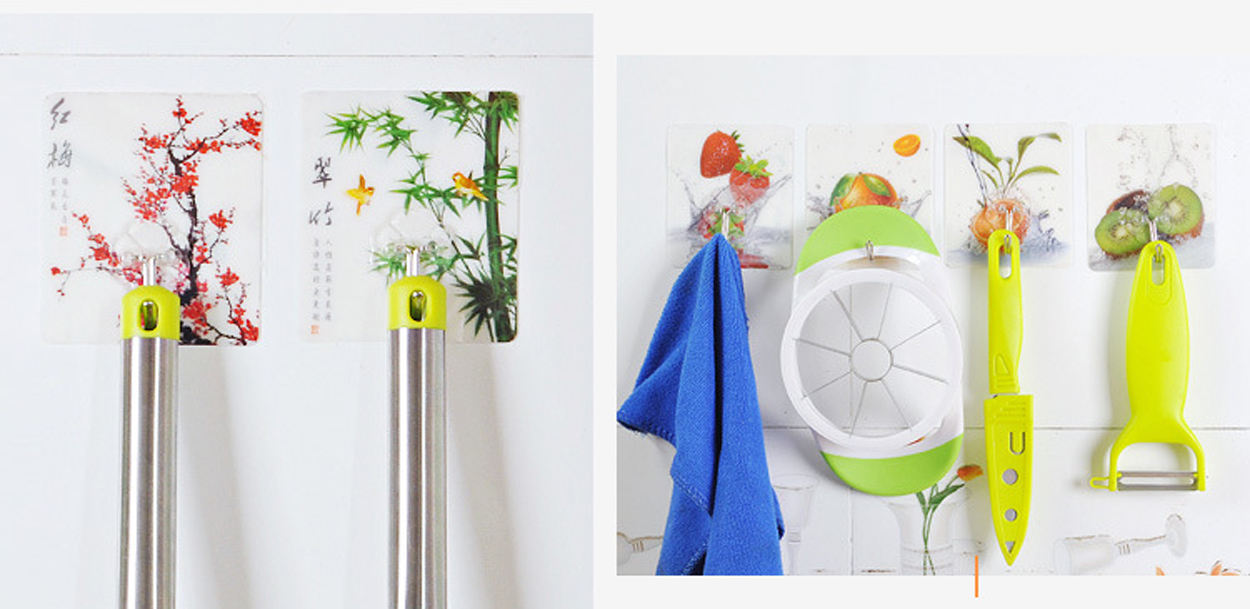 Tiện lợi, nhanh chóng dễ dàng sử dụng, không cần khoan tường. Bộ dán sử dụng keo dán cường lực, độ chịu lực dưới 2kg. - Chú ý: khi bóc keo dán cần làm sạch