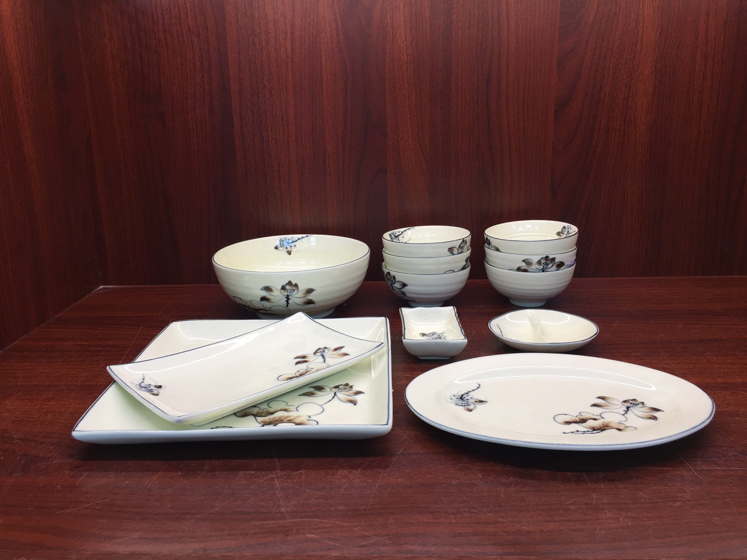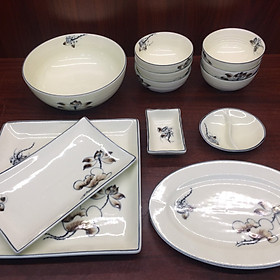 Mua tại TiktokChi tiết Bộ bàn ăn 12 sản phẩm Bát Tràng vẽ hoa súng cao cấp gồm :