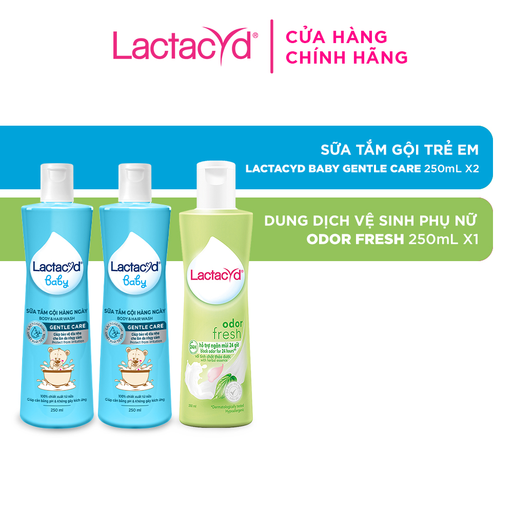 ✨Bộ 2 chai Sữa Tắm Gội Trẻ Em Lactacyd Baby Gentle Care 250ml + 1 Dung Dịch Vệ Sinh Lactacyd Odor Fresh 250ml