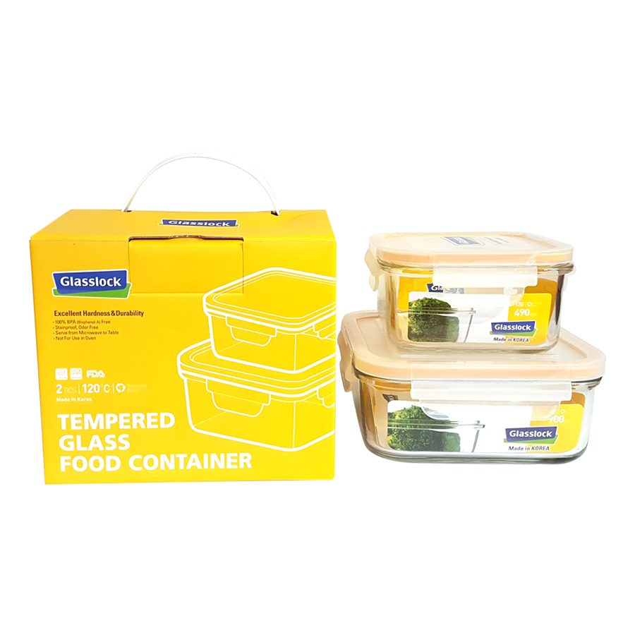 ✨Bộ 2 Hộp Thủy Tinh Hình Vuông Glasslock GL1683 (490 + 900 ml)