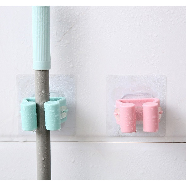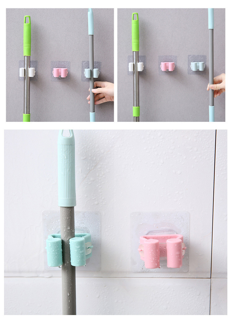 Móc dán tường thông minh kẹp chổi giữ cây lau nhà miếng trong suốt đa năng treo đồ