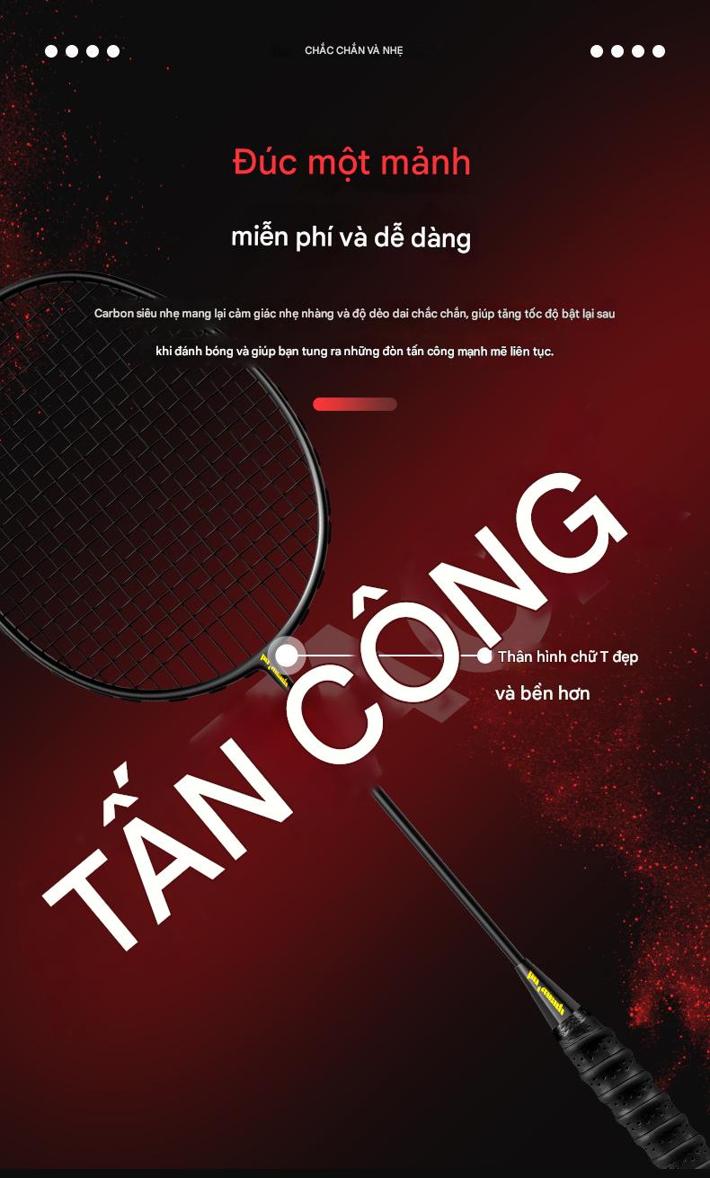 • Chất liệu khung vợt cầu lông: Sợi carbon.