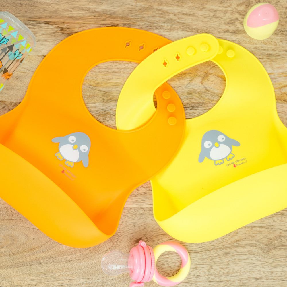 • Bộ gồm 2 yếm ăn cho bé màu vàng và cam bắt mắt, kích thích ngon miệng