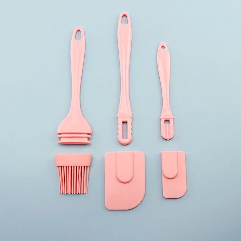 1 bộ gồm 5 chiếc: thìa phết kem, chổi quét, dụng cụ đánh trứng, phới vét kem, thìa. - Không có hạn sử dụng - Chất liệu silicone - Hàng mới 100%.