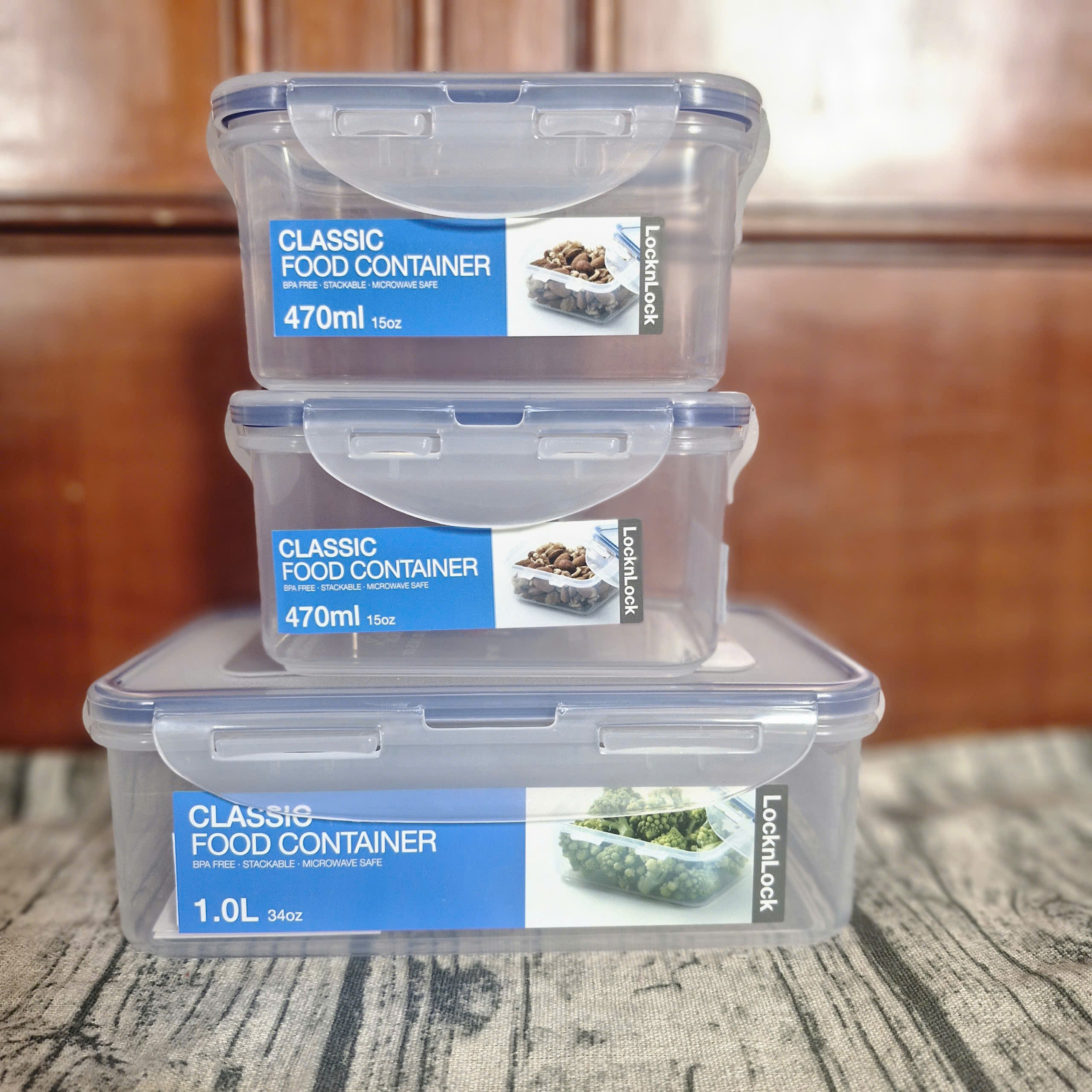 Bộ 3 Hộp Nhựa Classic Lock&Lock Hình Chữ Nhật Khóa 4 Cạnh Kín Hơi (1 Hộp 1L và 2 Hộp 470ml) được làm từ nhựa PP đã thông qua kiểm định theo tiêu chuẩn FDA