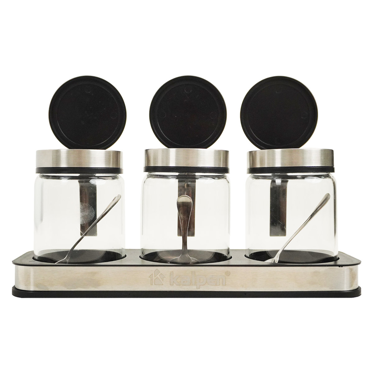 Bộ 3 hũ thủy tinh đựng gia vị 300ml Kalpen SB2 kèm khay và muỗng Inox