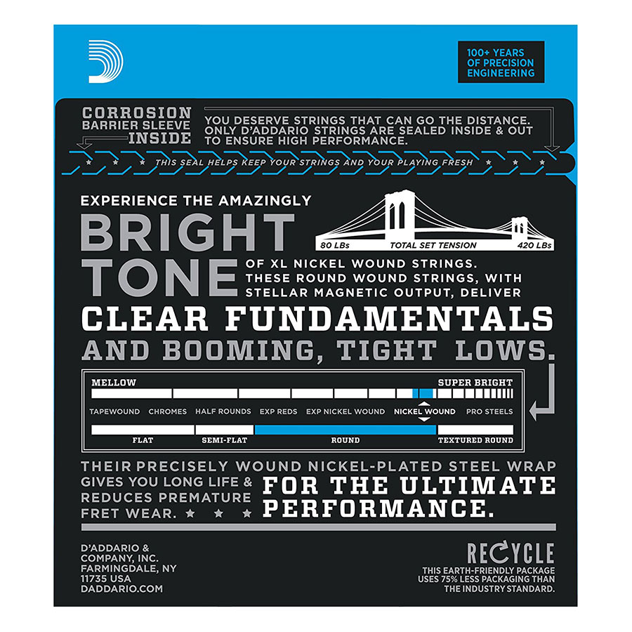 - Bộ 4 Dây Đàn Guitar Bass D'Addario EXL170 được sản xuất bằng thép mạ nickel với tông màu sáng đặc biệt và ngữ điệu xuất sắc. Âm bass thể hiện được hầu hết tất cả các thể