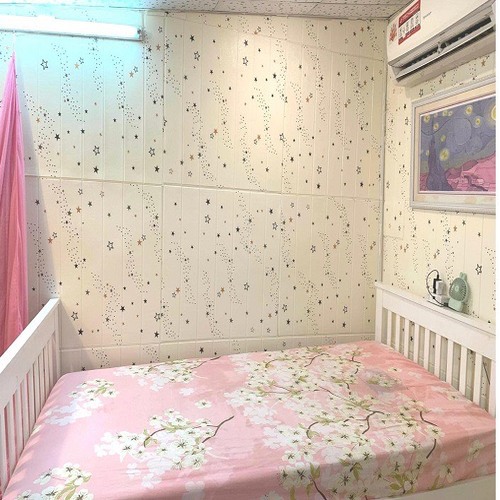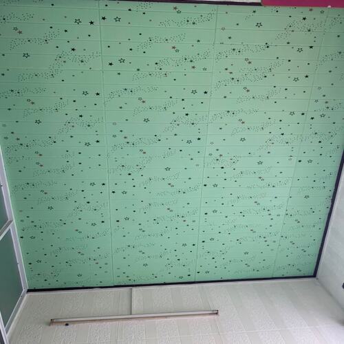 Độ dày chuẩn : 3mm Kích thước: 70*77 ( ngang 70cm, cao 77cm) Sẵn keo ở mặt sau, lột ra là dán Công dụng tấm xốp : ️Dán che khuyết điểm tường mốc,