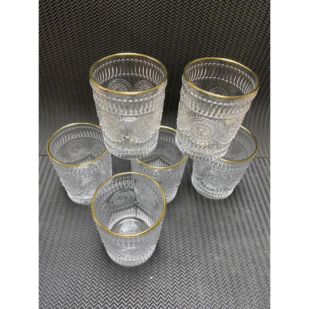 Bộ 6 cốc thủy tinh chịu nhiệt, họa tiết nổi, viền vàng