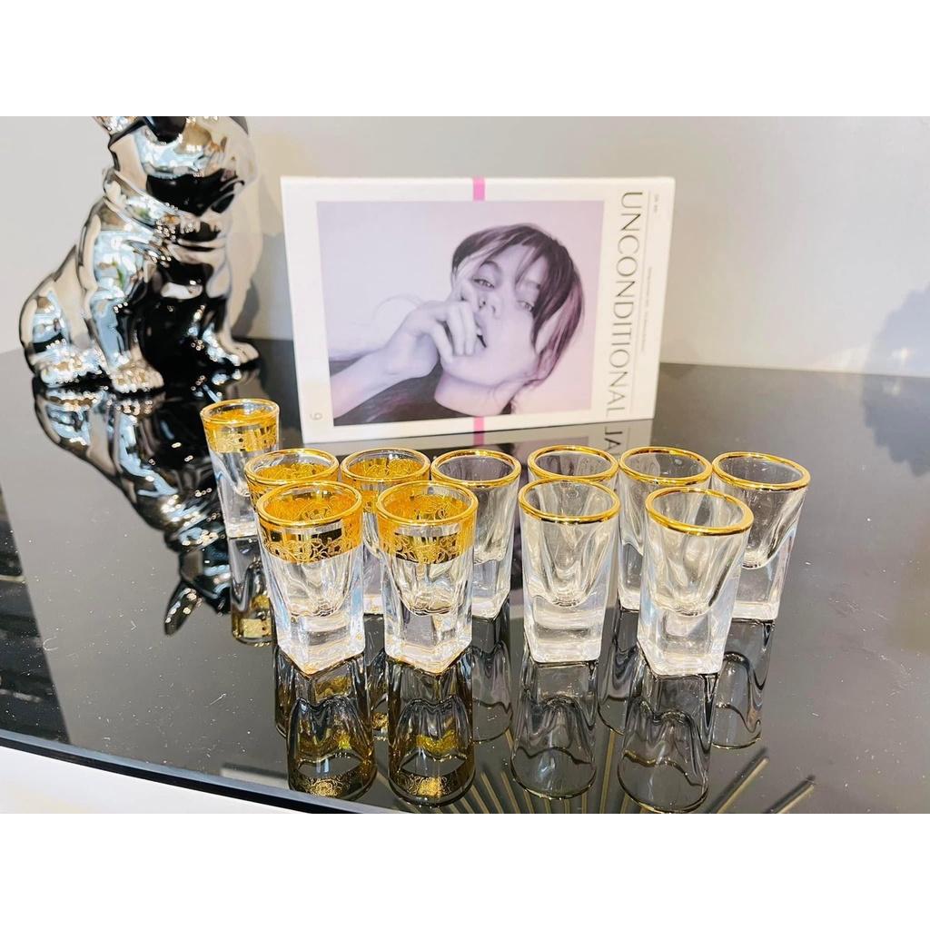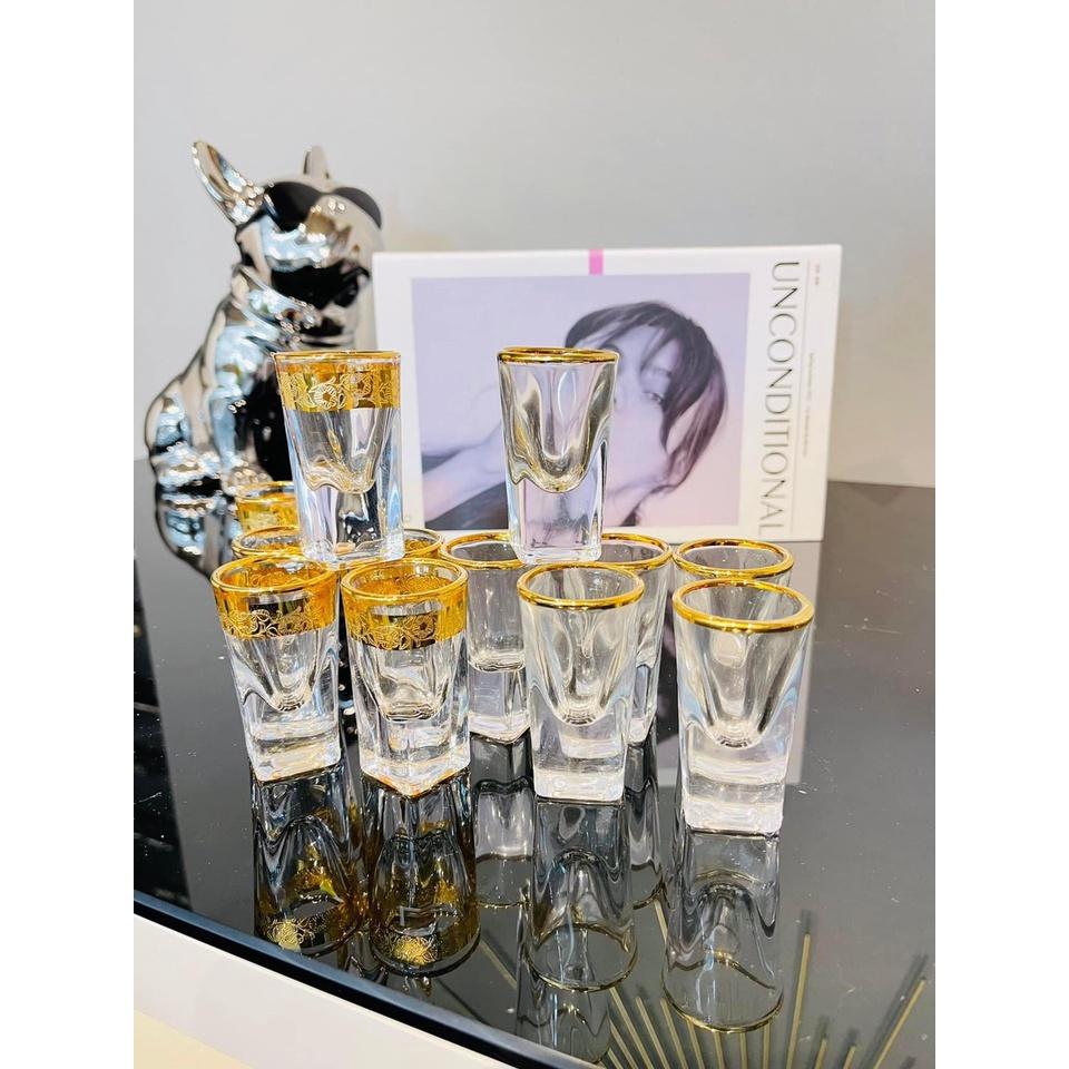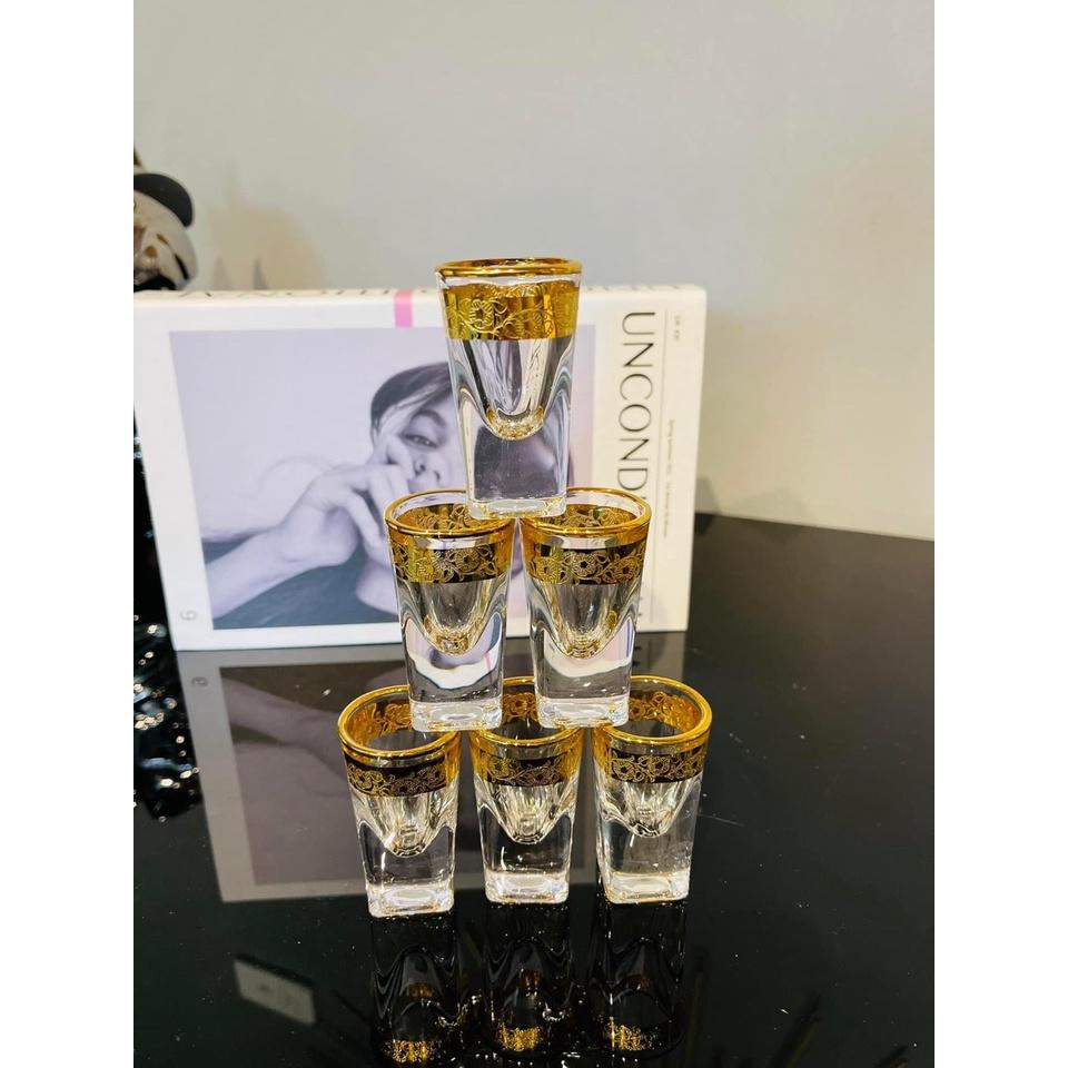 ✨BỘ 6 LY THỦY TINH UỐNG RƯỢU KHẢM VÀNG CAO CẤP